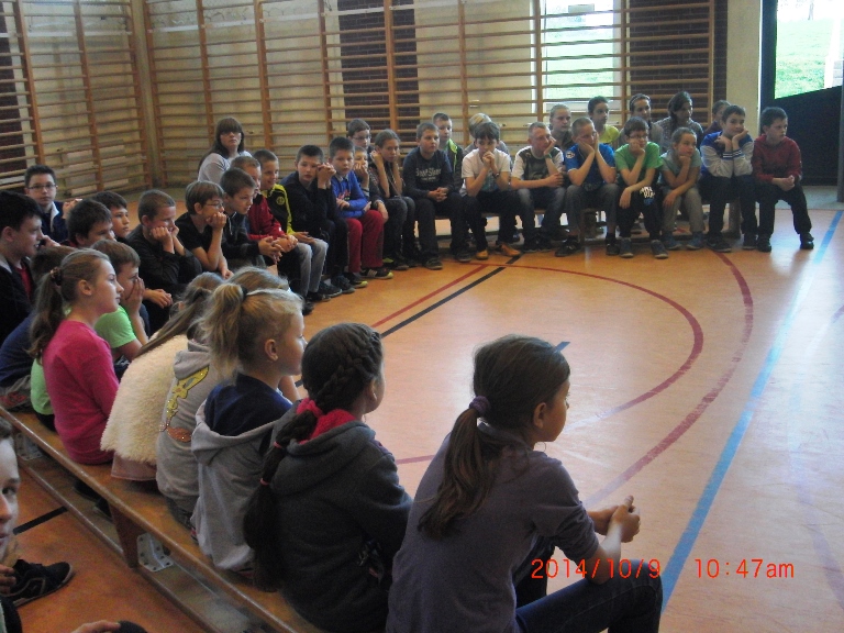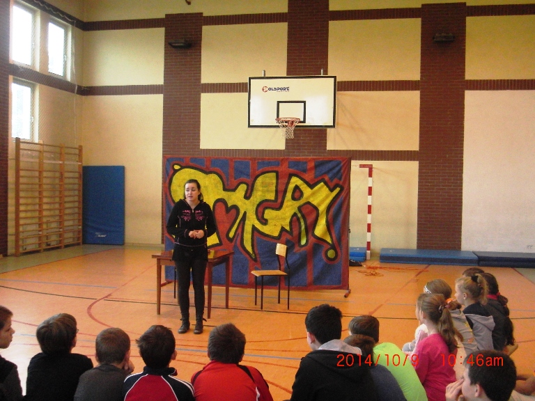 Główny problem dotyczył wszechobecnego w naszym życiu zjawiska agresji oraz obojętności na problemy innych. Bezpośredni kontakt wykonawców z widzami powodował, że nasi uczniowie mogli aktywnie uczestniczyć w przedstawieniu, co z pewnością pozytywnie wpłynie na przyswojenie sobie prezentowanych treści.
