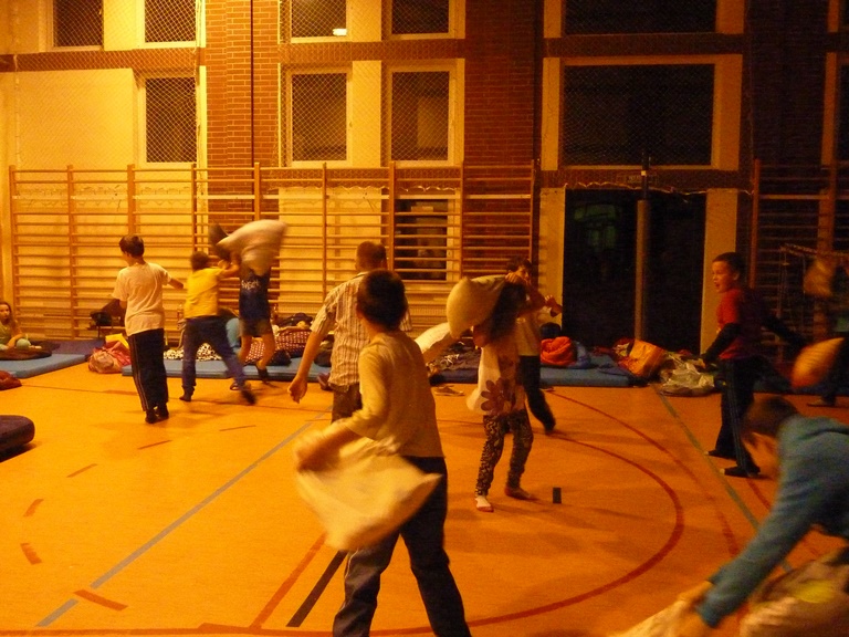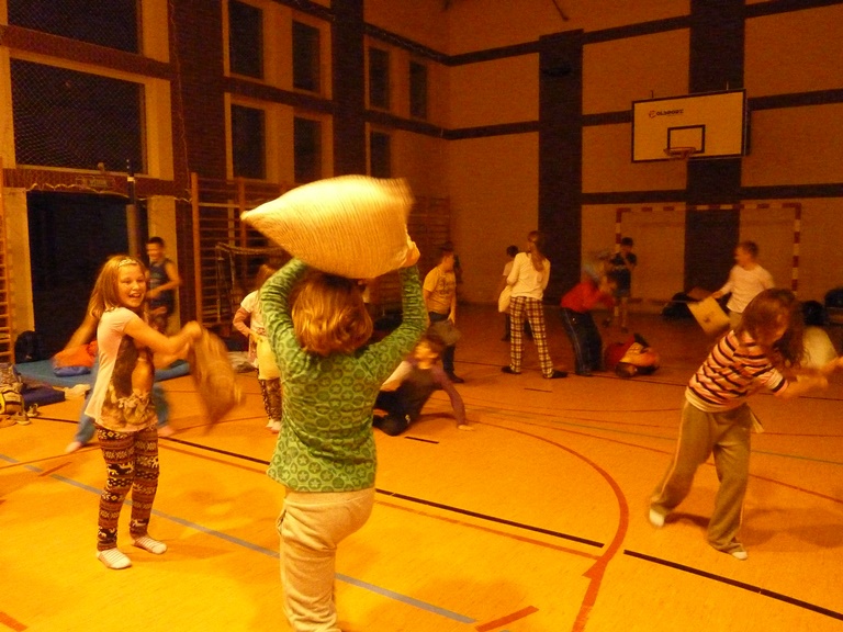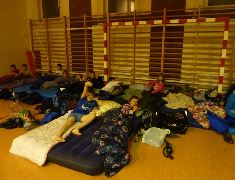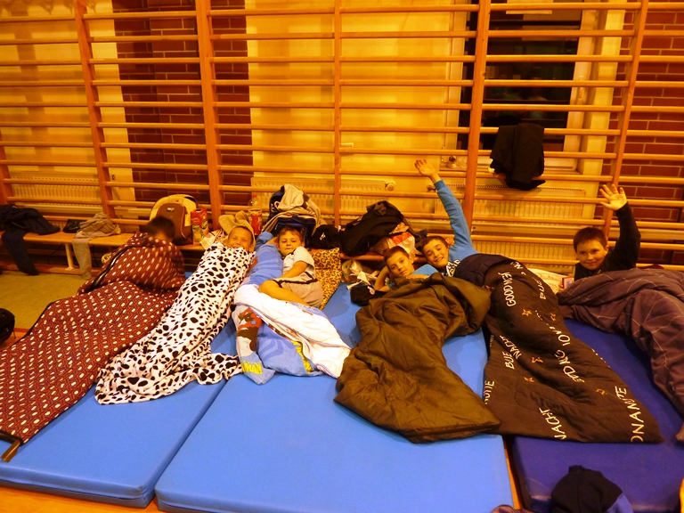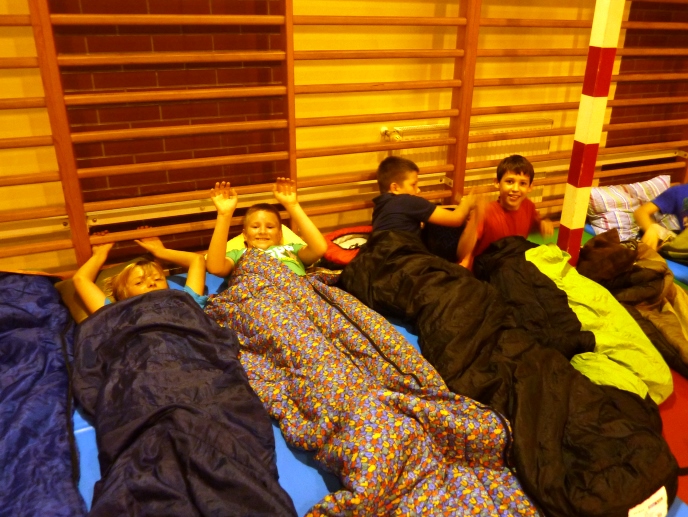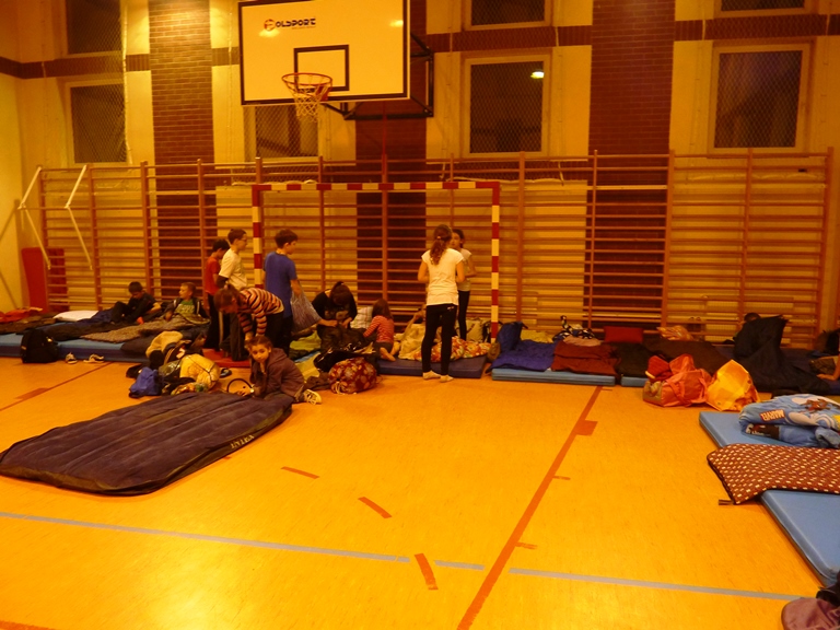 W drugi weekend października klasy starsze spotkały się na jesiennym biwaku, który odbył się w naszej szkole w dniach 10 oraz 11 października 2014 roku. Biwak rozpoczął się wspólnymi podchodami, podczas których biwakowicze podzielili się na dwie drużyny i wraz z opiekunami oraz wielkim entuzjazmem ruszyli do zabawy. Wraz z nastaniem zmierzchu podchody dobiegły końca a cała grupa ruszyła w „tajemne miejsce” na wspólne ognisko przygotowane przez dwóch uczniów klasy VI: Marka oraz Przemka. Z pełnymi brzuchami i w wyśmienitych humorach ruszyliśmy do szkoły, żeby przygotować się do noclegu. Niespodziewanie podczas przygotowywania miejsc noclegowych „wybuchła” wielka bitwa na poduszki. Po wyczerpującej walce na wpół przytomni wojownicy zalegli w swoich mięciutkich i przytulnych śpiworkach, żeby oglądnąć „bajkę na dobranoc”, po której wszyscy biwakowicze grzecznie lub mniej (w zależności od pozostałej energii) udali się na spoczynek.