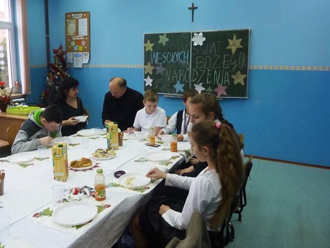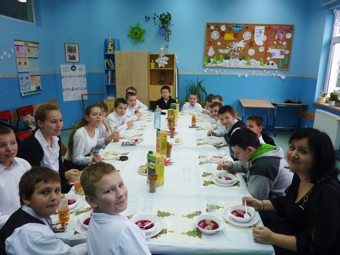Po przedstawieniach wszyscy udali się do swoich klas, gdzie wspólnie z wychowawcami i rodzicami zasiedli do stołów wigilijnych.