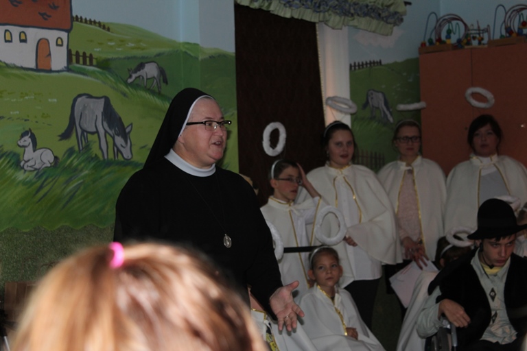 12 grudnia odbył się finał akcji. Wraz z uczniami z kl. VI – Magdą Małolepszą i Markiem Dwojakiem – mieliśmy przyjemność spotkać się z dziećmi z ośrodka, jak również obejrzeć Jasełka w ich wykonaniu. Na zakończenie kolędowaliśmy wspólnie z p. Anną Wyszkoni – Ambasadorką Placówki. Myślę, że spotkanie z dziećmi pozostanie w naszej pamięci na długo.
