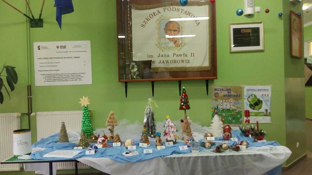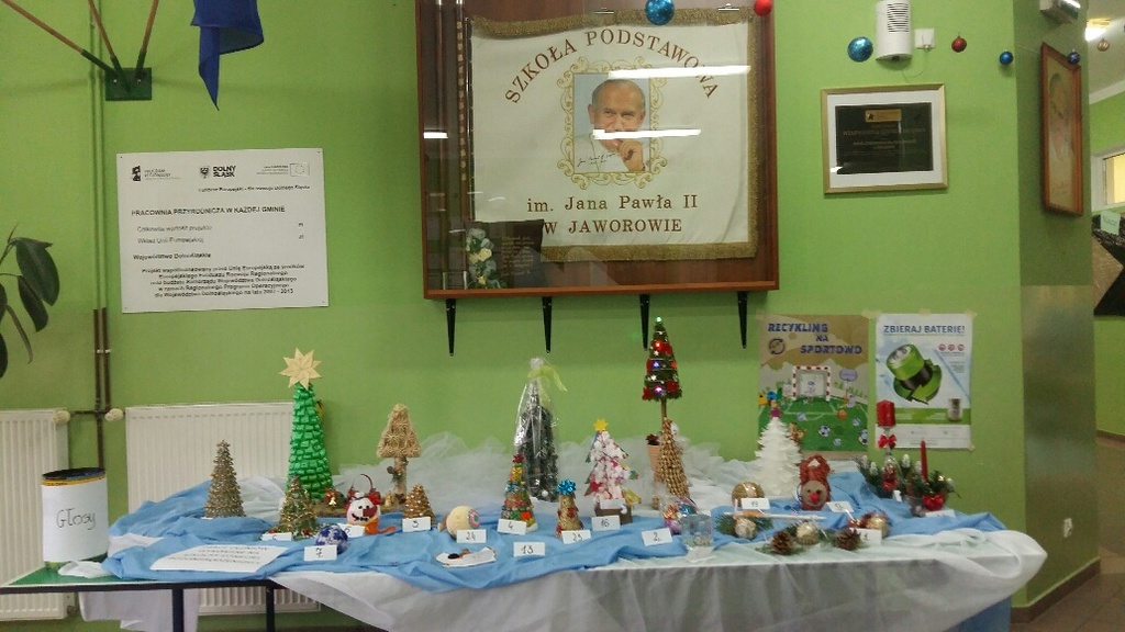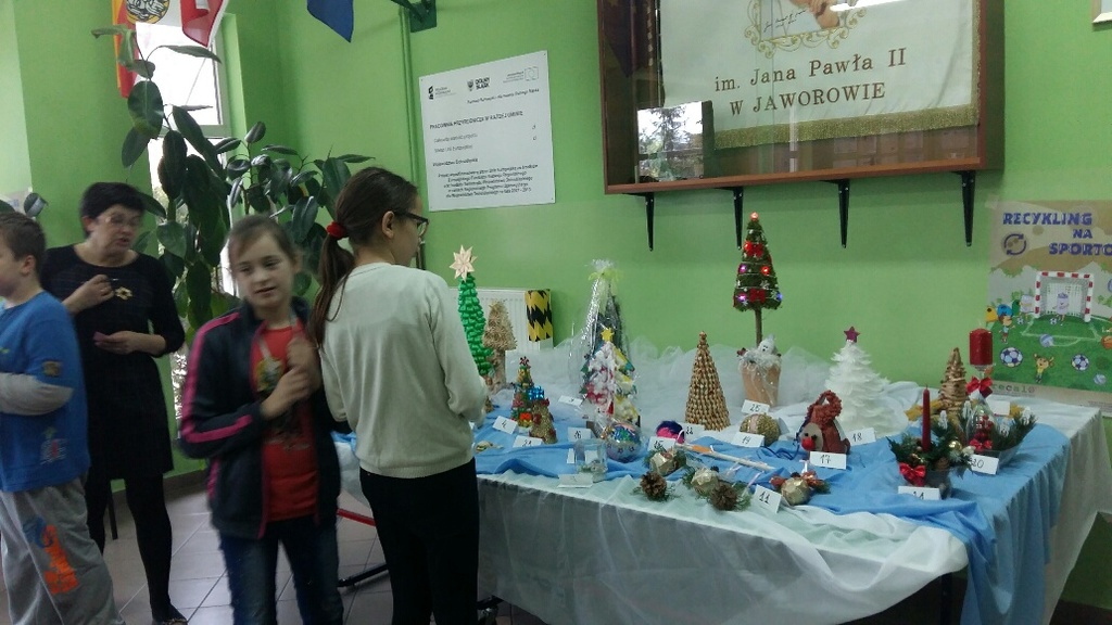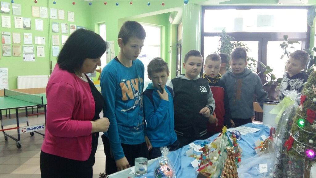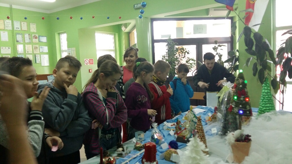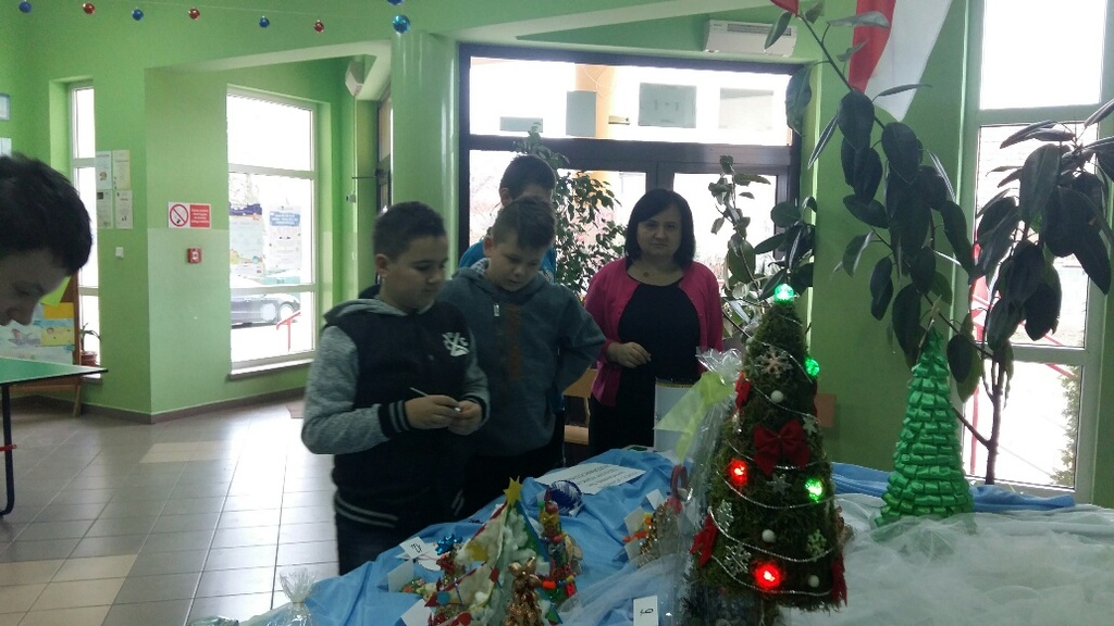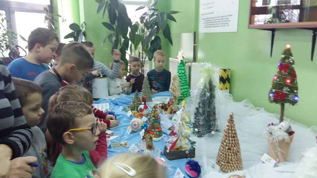 Rada Rodziców przy współpracy z nauczycielami (panią Bożeną Świerzko oraz Agnieszką Hołomejko) ogłosiła konkurs na najbardziej pomysłową ozdobę bożonarodzeniową wykonaną przez duet rodzic - dziecko. Prace były bardzo piękne i pomysłowe a wszyscy uczniowie klas 0 – VI w TAJNYM głosowaniu wybrali, ich zdaniem, najładniejszą. Pierwsze miejsce zdobyła Kinga Mamczyc z klasy II, drugie Gabrysia Łopuch z klasy I a trzecie Maja Ziemiańska z klasy III oraz Wiktor Słowikowski z klasy I.