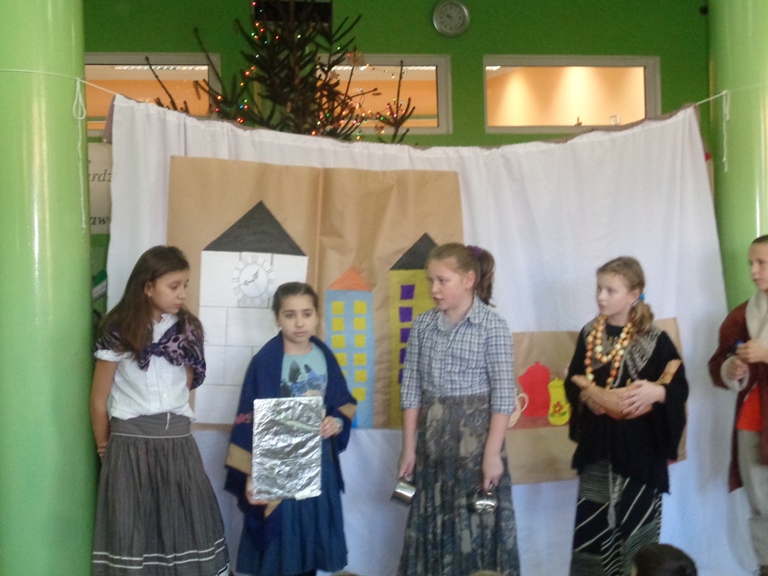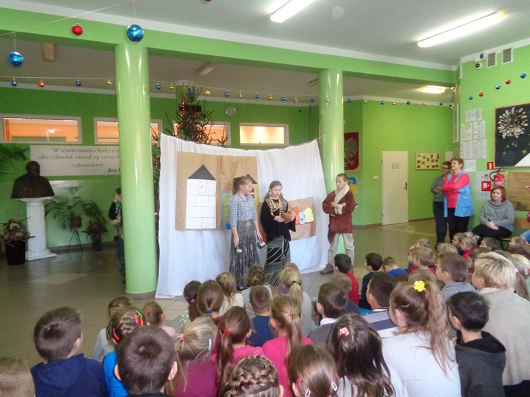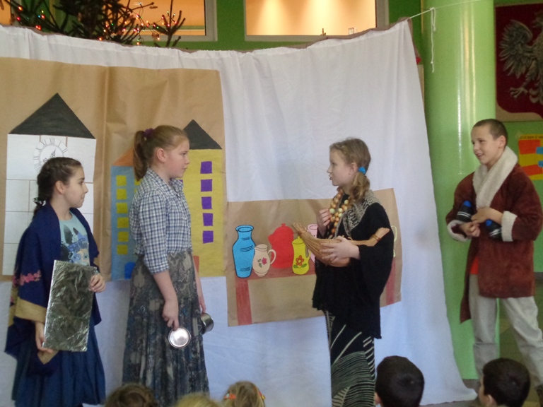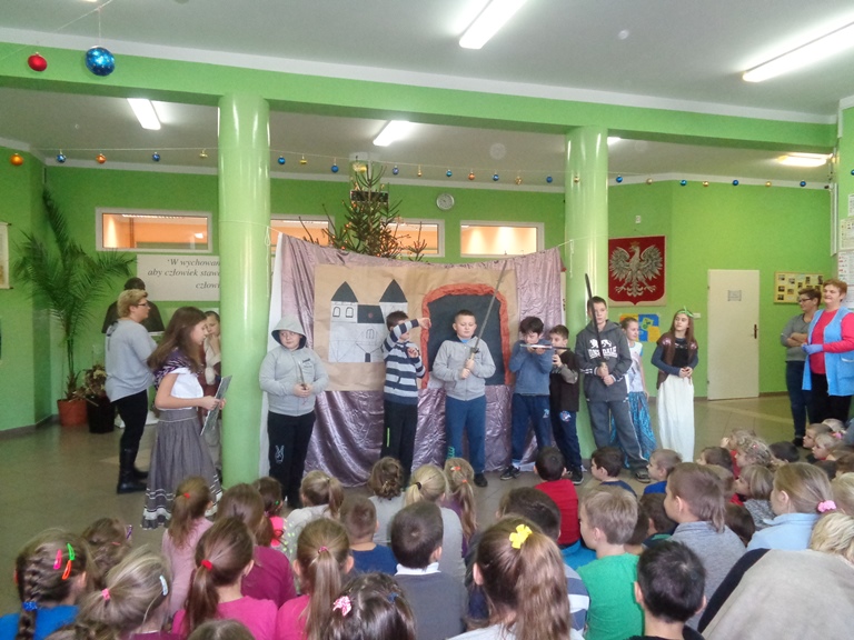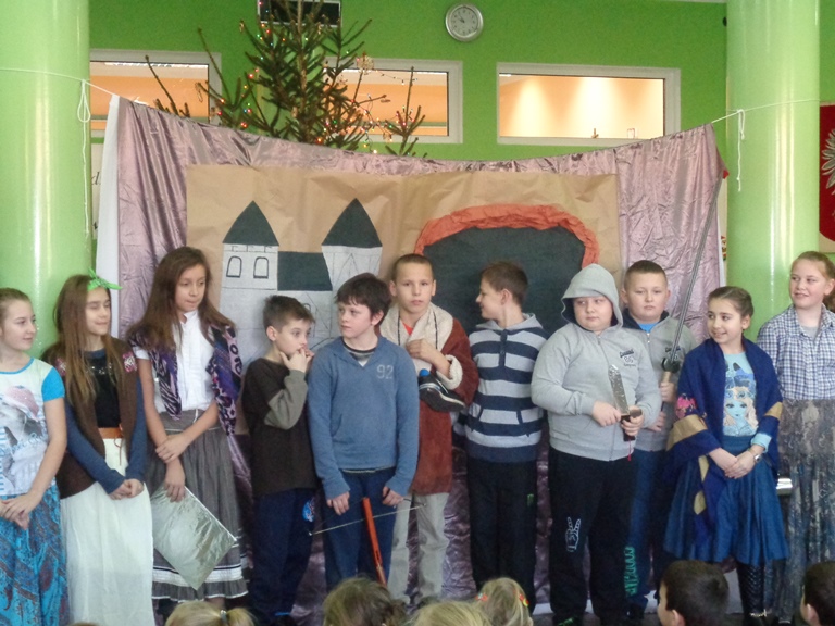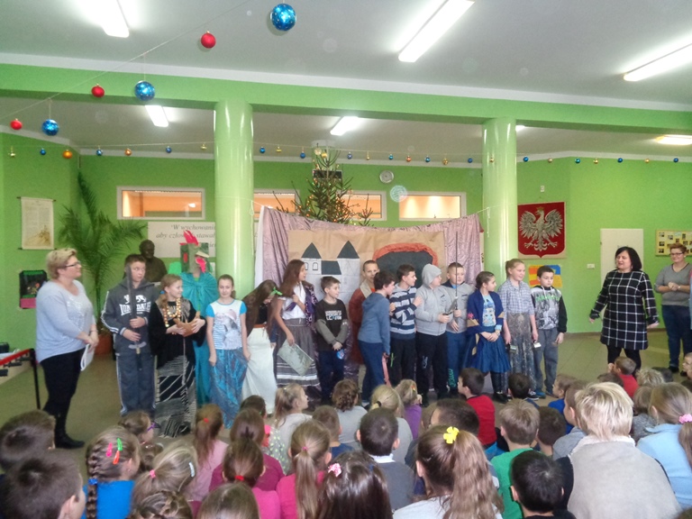 Wszyscy zadbali o odpowiednie stroje, rekwizyty i dekoracje do sztuki, które złożyły się na niezwykły charakter przedstawienia. Praca uczniów została doceniona przez publiczność, która gromkimi brawami podziękowała za występ swoim koleżankom i kolegom.