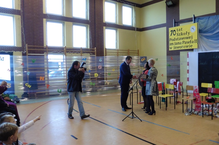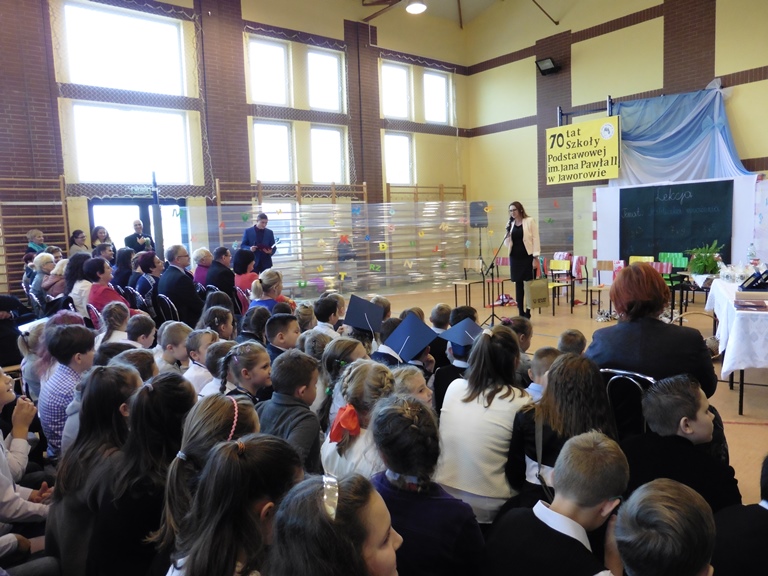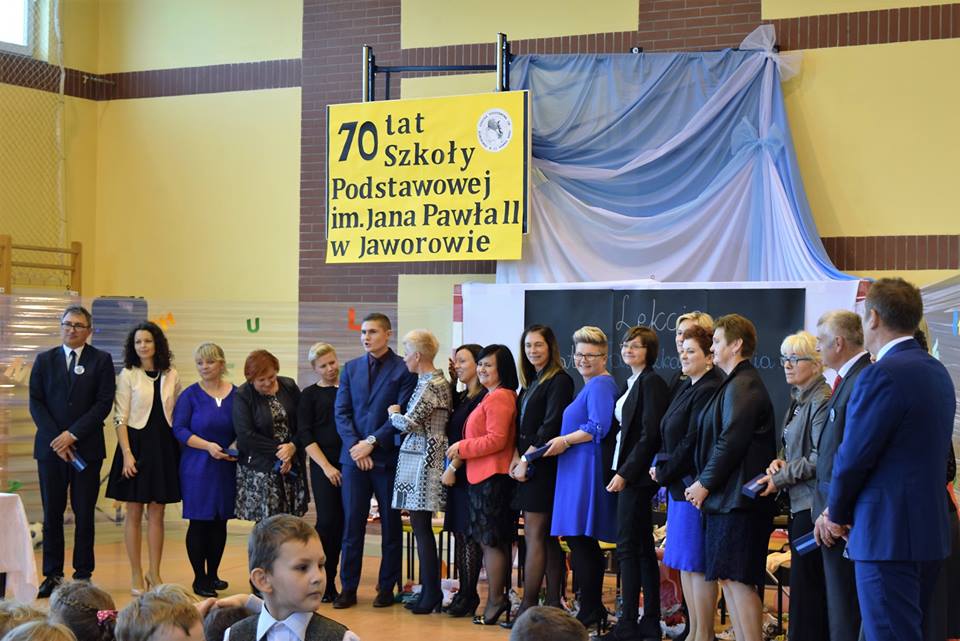 Obchody jubileuszu 70-lecia istnienia naszej szkoły rozpoczęły się 14 października liturgią Mszy Św., którą odprawił Ksiądz Infułat Józef Pater. Przy relikwiach Św. Jana Pawła II – patrona naszej Społeczności, wobec Boga, we wspólnocie przyjaciół, wypowiedzieliśmy naszą radość i wdzięczność za tak wiele lat funkcjonowania szkoły na terenie wsi Jaworów.