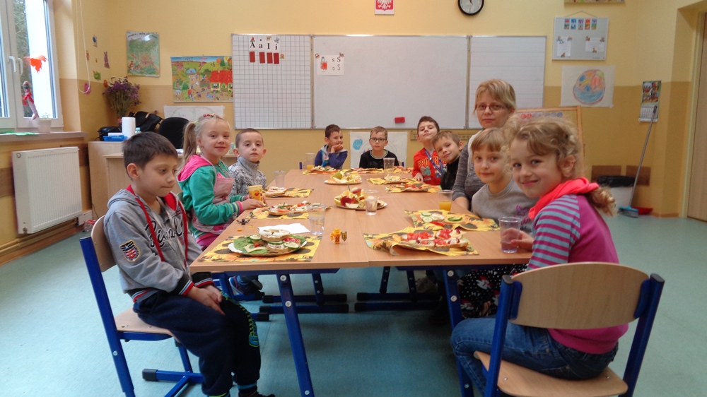Podobnie jak w roku ubiegłym, w ramach Europejskiego Dnia Zdrowego Jedzenia i Gotowania, w dniu 8 listopada 2016 r. klasa I,II,III oraz oddział O wzięły udział w akcji „Śniadanie daje moc!". W tym roku przeprowadziliśmy tę akcję we wtorek, na drugiej i trzeciej godzinie zajęć. Zależało nam, aby wspólnie przygotowany i spożyty posiłek połączyć z przypomnieniem przede wszystkim ważnej roli śniadania, ale także zasad zdrowego odżywiania, wartości odżywczych warzyw, owoców i wybranych produktów. W zorganizowaniu akcji, podobnie jak w roku ubiegłym, wsparli nas rodzice naszych uczniów. Dzięki nim na naszych szkolnych stolikach śniadaniowych znalazły się kolorowe kanapki, przeróżne sałatki warzywno-owocowe i wiele gatunków pieczywa. Nie zabrakło również świeżo wyciskanych soków. Klasy częstowały się nawzajem i dzieliły swoimi wiktuałami. Cała akcja z pewnością przyczyniła się do utrwalenia zdrowych nawyków żywieniowych naszych uczniów, ale również wzmocniła integrację szkolnej społeczności.