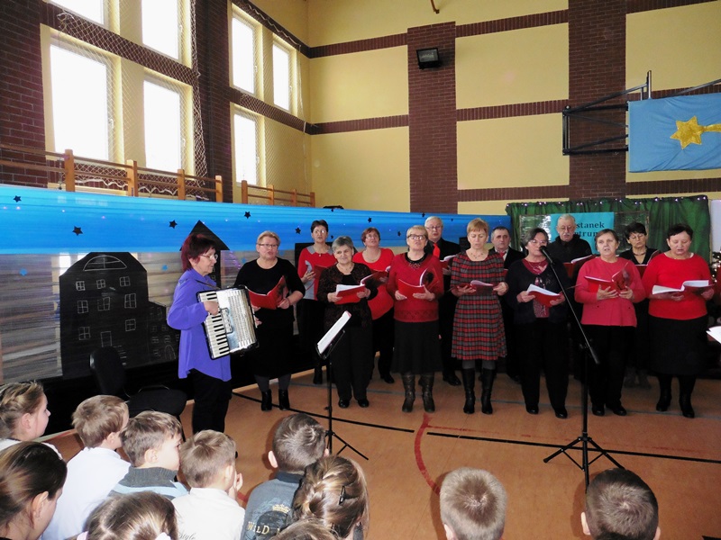 Ten dzisiejszy, jakże szczególny dzień, był także okazją, aby podziękować Babciom i Dziadkom za ofiarowane serce, dobroć, cierpliwość i miłość, którymi darzą swoje wnuki każdego dnia. A jak lepiej podziękować, jeśli nie wspaniałym występem??? Były więc tańce, śpiewy, wiersze, gra na dzwonkach... A na koniec dla wszystkich zgromadzonych gościnnie zaśpiewał zespół "Skrzydła Ateny", który po zakończeniu uroczystości miał okazję poznać goszczące w naszej szkole studentki, a dzięki ich prezentacji poznać nieco kraje, z których przybyły: Malezję, Indonezję oraz Koreę.