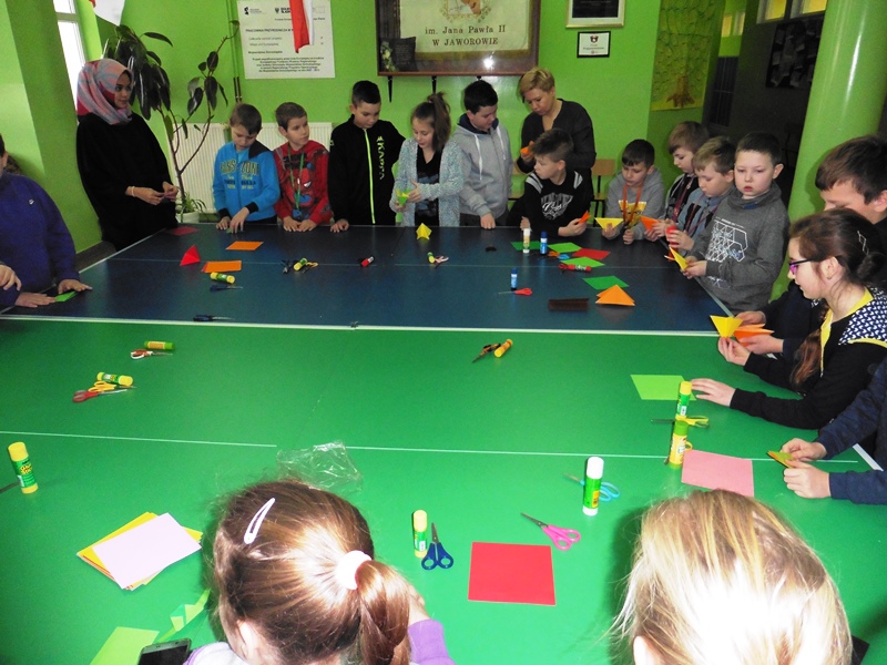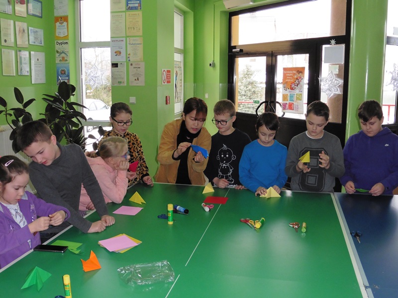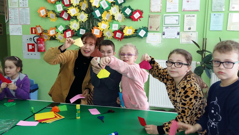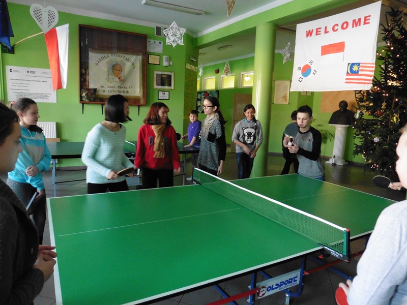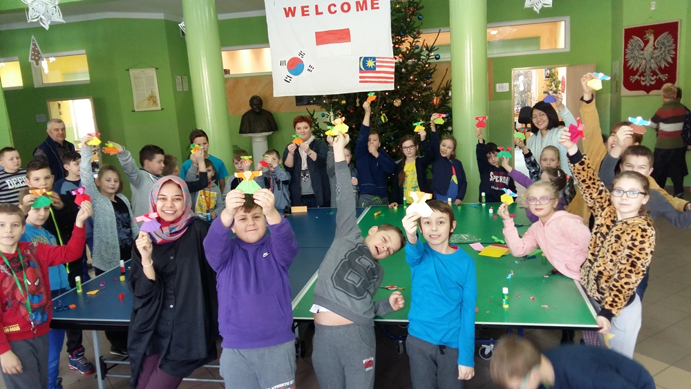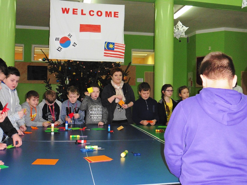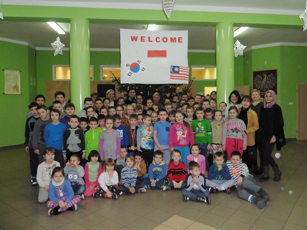W dniach od 9 do 13 stycznia gościli w naszej szkole studenci zrzeszeni w organizacji AISEC. Goście nasi pochodzili z Malezji, Indonezji oraz Korei Południowej. Podczas tygodniowego pobytu w naszej szkole przybliżali naszym uczniom kulturę swoich krajów a także zachęcali do nauki języka angielskiego. We wtorek i w środę odbyły się także zajęcia popołudniowe z udziałem gości, podczas których graliśmy w gry planszowe (wyłącznie po angielsku) oraz robiliśmy maski karnawałowe. W piątek odbyła się także lekcja origami, podczas której Doya z Korei Południowej uczyła nas robić HOMBO tradycyjny strój koreański. W piątek nasi goście byli również z wizytą u pana burmistrza, która wywarła na nich bardzo duże wrażenie.