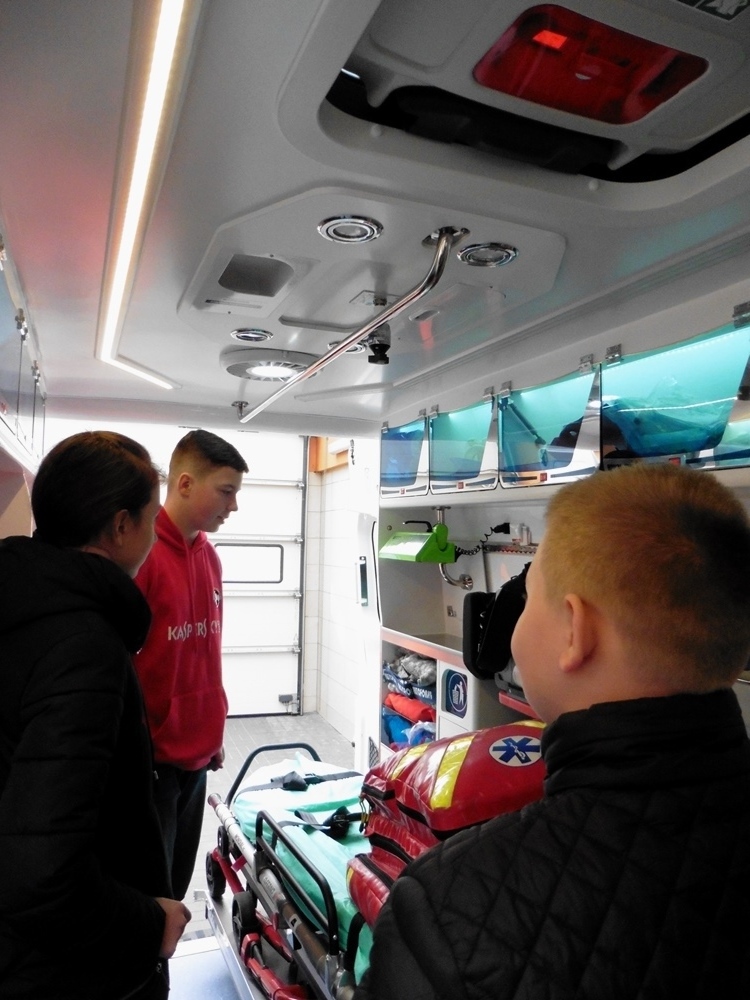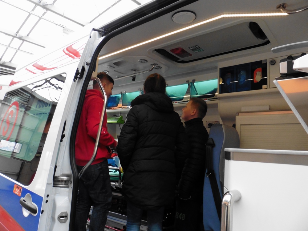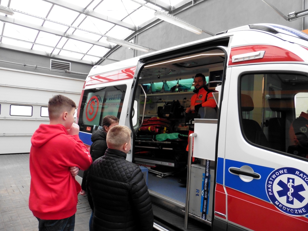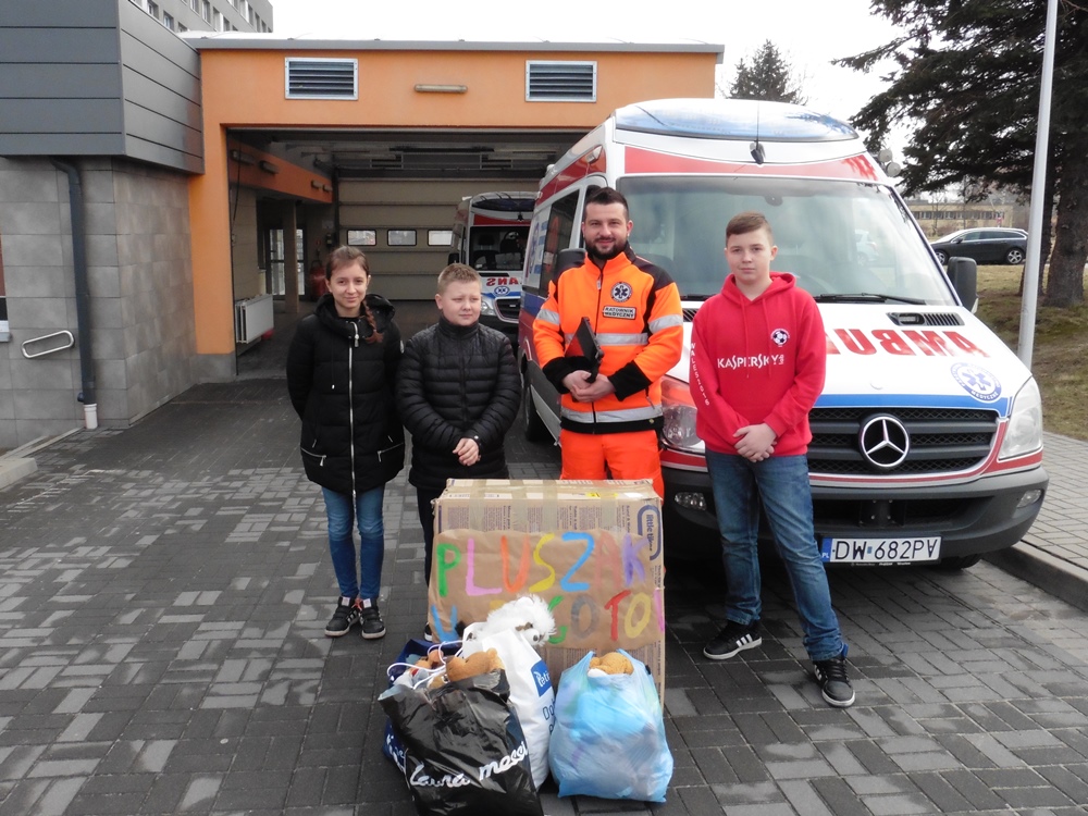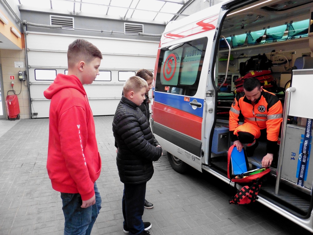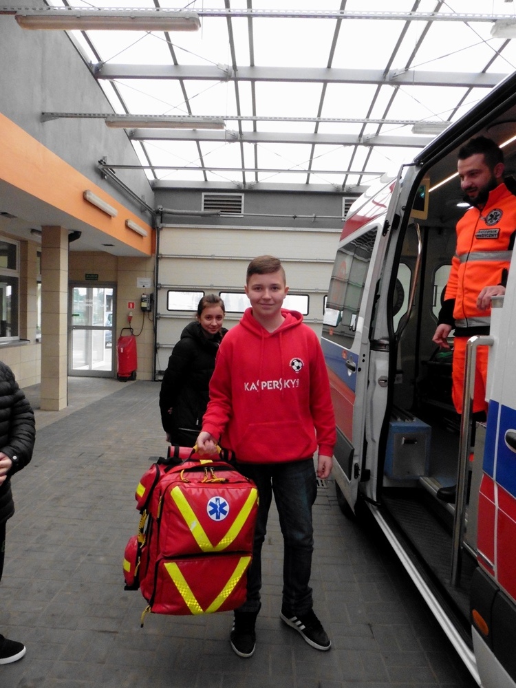 Dnia 8 marca delegacja Samorządu Uczniowskiego – Justyna, Robert i Miłosz - wraz z opiekunem – p. A. Pater – odwiedzili Pogotowie Ratunkowe w Oławie, by przekazać zebrane pluszaki. Maskotki odebrał pomysłodawca i koordynator akcji - p. Piotr Skibiński, który był tak miły i opowiedział nam o pracy ratownika medycznego, pokazał i omówił wyposażenie karetki, oprowadził nas po pomieszczeniach pogotowia oraz po Szpitalnym Oddziale Ratunkowym, na który trafiają poszkodowani przywożeni przez karetkę.