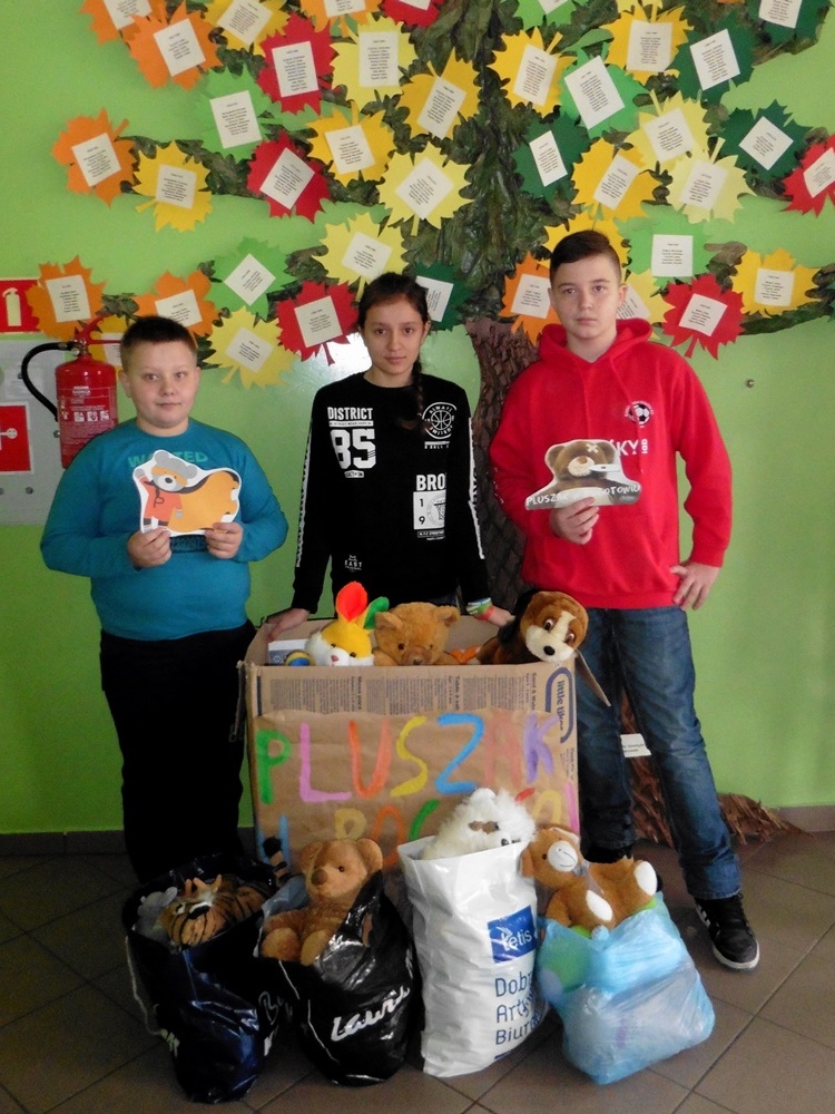 Nasi uczniowie bardzo chętnie oddawali w szczytnym celu swoje ulubione maskotki. Chęć wywołania uśmiechu na twarzach chorych dzieci korzystających z pogotowia lub przebywających na oddziałach szpitalnych zwyciężyła nad przywiązaniem do miśków, koników, słoników, małpek i innych pluszowych zabawek.