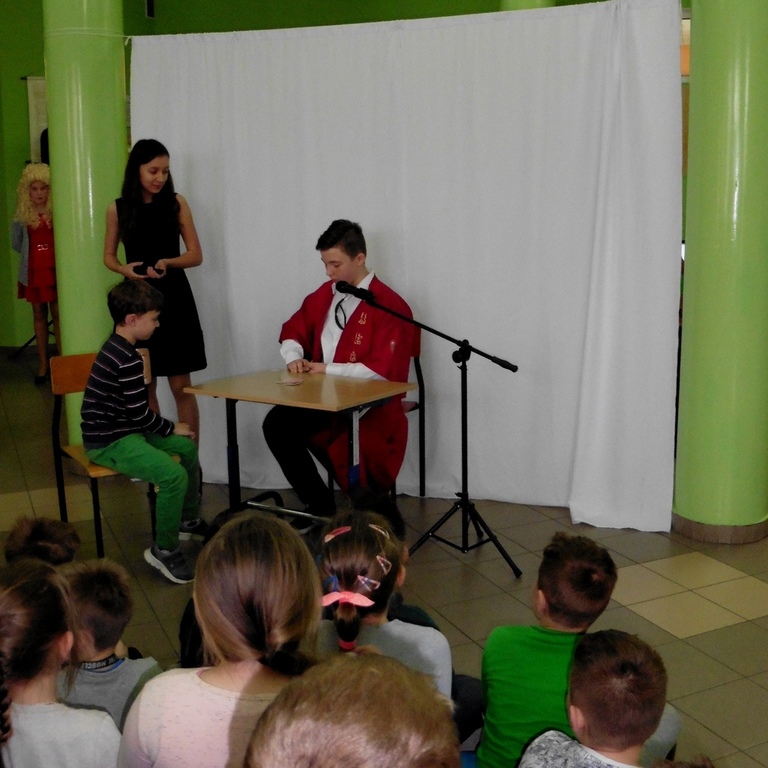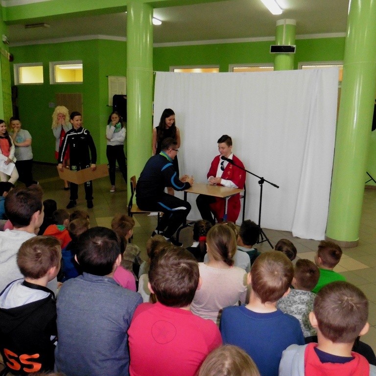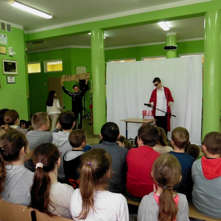Występ kabaretowy w wykonaniu uczniów z koła teatralnego klas IV-VI prowadzonego przez p. Paulę Kuczyńską.