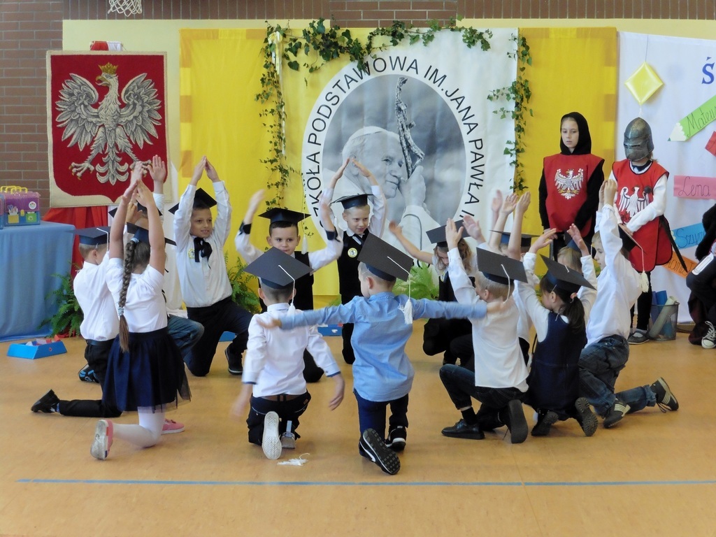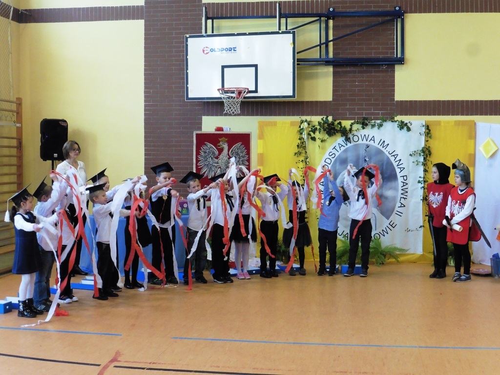 Montaż słowno-muzyczny poświęcony naszemu Patronowi przygotowała p. Joanna Golińska z uczniami klas IV-VII. Z kolei za drugą część spotkania odpowiedzialna była wychowawczyni naszych pierwszaków - p. Grażyna Piska.