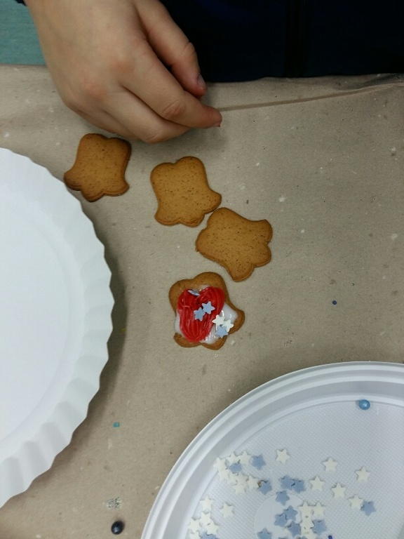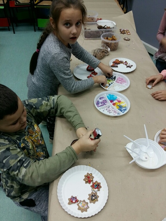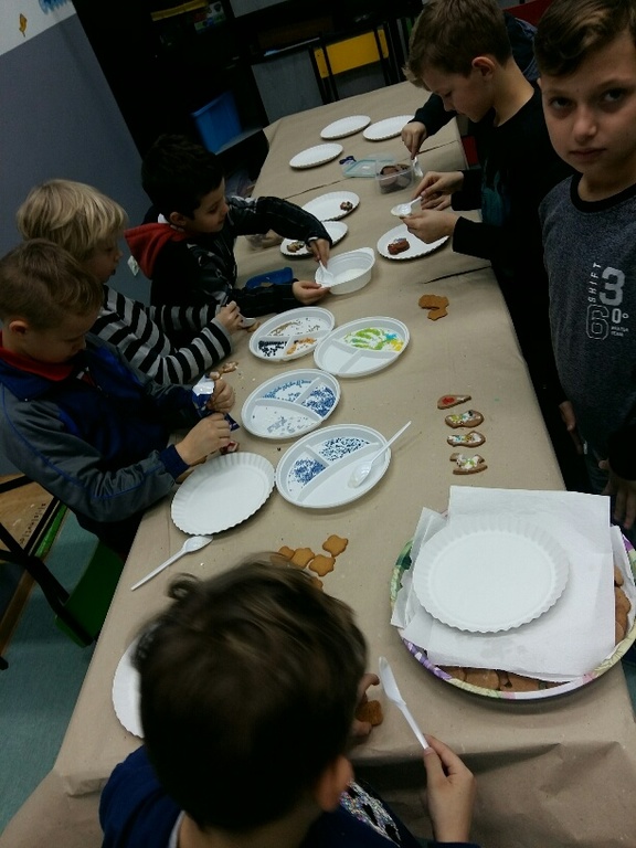 W ramach projektu English Teaching kl. II poszukiwała skarbu Mikołaja a także zdobiła pierniczki.