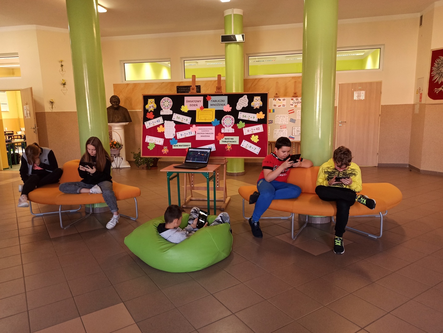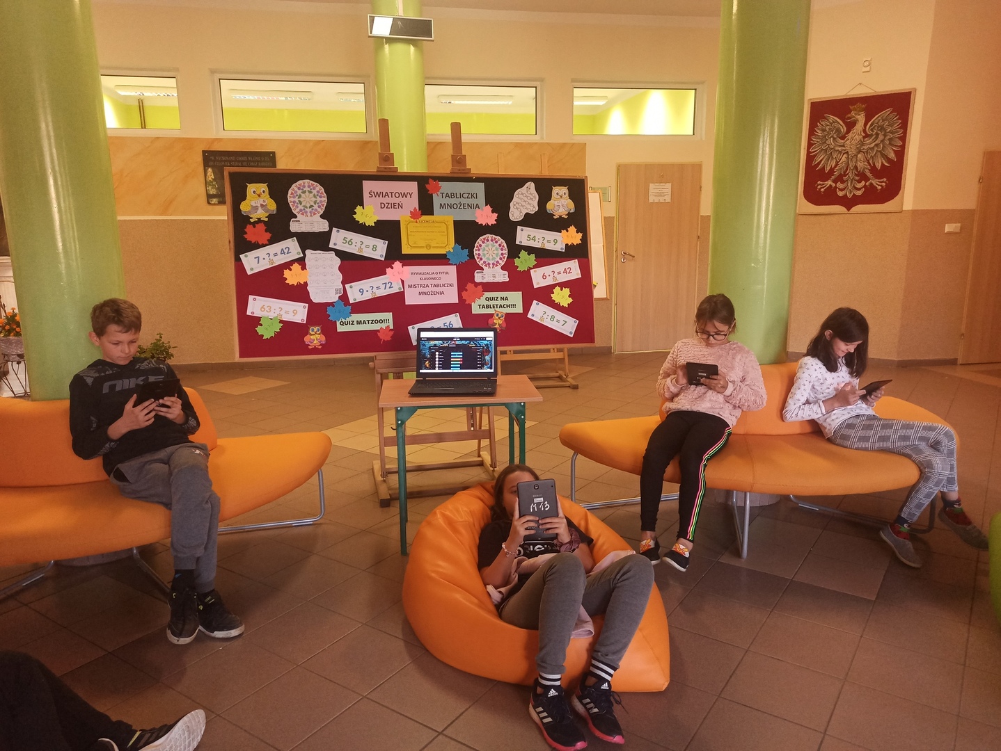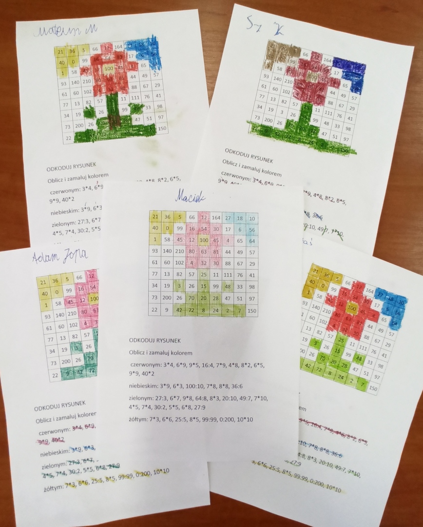 Po kilkudniowych przygotowaniach, podczas których doskonaliliśmy działania pamięciowe w zakresie mnożenia (online na stronie matzoo, w aplikacjach na tabletach, w postaci kodowania, mandali, gier planszowych, domina itp.), 4 października odbyły się konkursy na klasowego Mistrza Tabliczki Mnożenia. Konkursy miały charakter egzaminów ustnych i pisemnych w klasach starszych oraz quizów na tabletach (na platformie quizizz) w klasach młodszych. Wszystkim zabawom i konkursom towarzyszyło wiele pozytywnych emocji i uśmiechów.