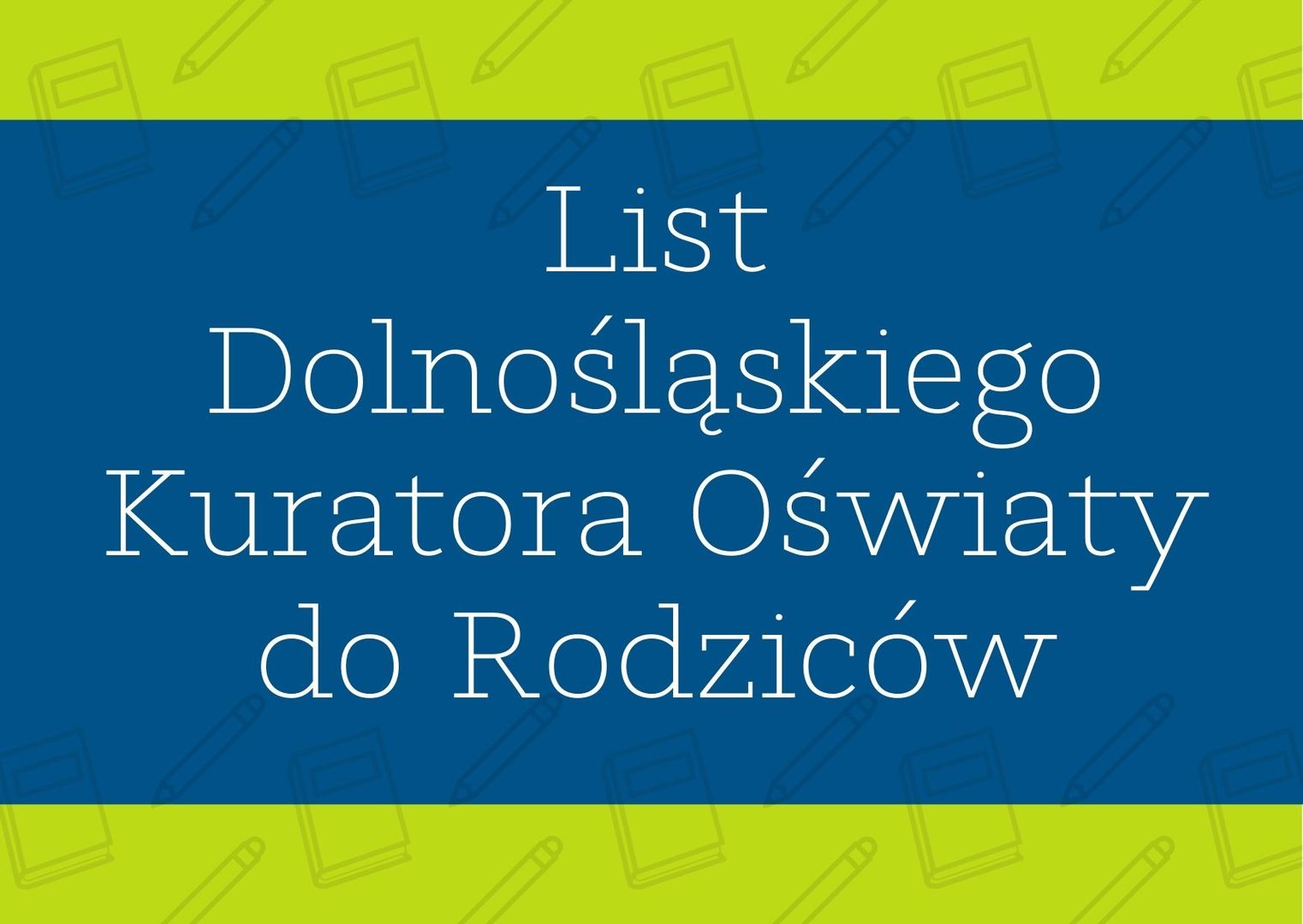 Zachęcamy Państwa do zapoznania się z listem Dolnośląskiego Kuratora Oświaty z przekazem dla Rodziców - w załączeniu poniżej