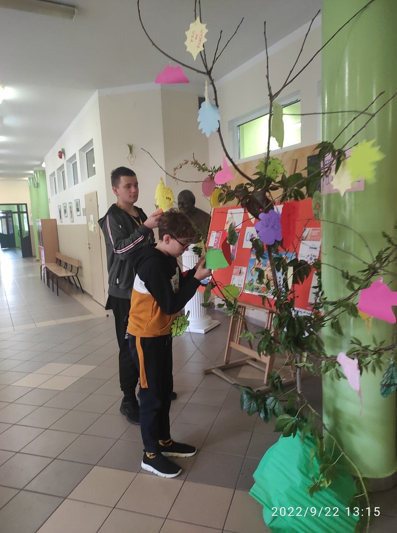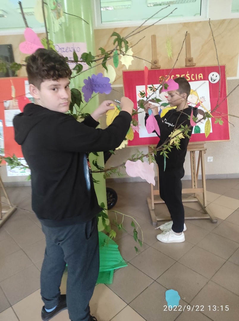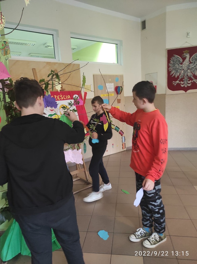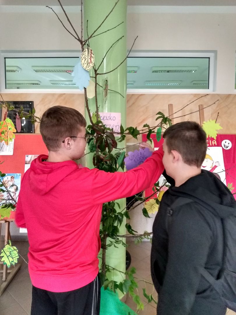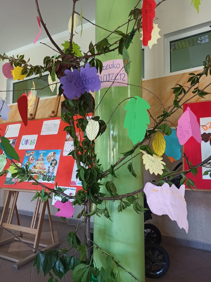 "Jeśli potrafisz marzyć, to potrafisz tego dokonać"… W kolejnym dniu obchodów „III Ogólnopolskiego Tygodnia Szczęścia w Szkole” starsi uczniowie mieli możliwość przenieść się do świata marzeń. Marzeń i pragnień do spełnienia już wkrótce, ale i takich, na które trzeba będzie jeszcze poczekać. Uczniowie rozmawiali o tym, czy warto marzyć i czy warto się jeszcze starać, gdy marzenia już się spełnią. Następnie przygotowali kolorowe liście, zapisali na nich swoje marzenia i zawiesili je na Drzewku Marzeń, które „wyrosło” na szkolnym korytarzu. Kto wie, może to drzewo ma moc spełniania marzeń...???