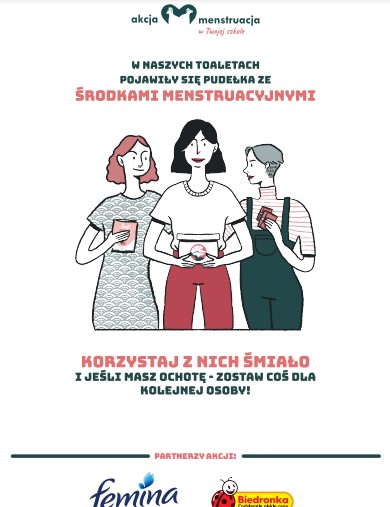 Nasza szkoła dołączyła do programu "Akcja menstruacja". Szczegóły na dołączonych grafikach oraz stronie: