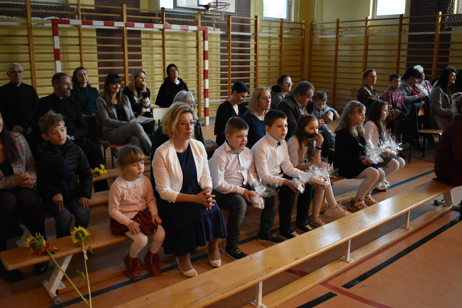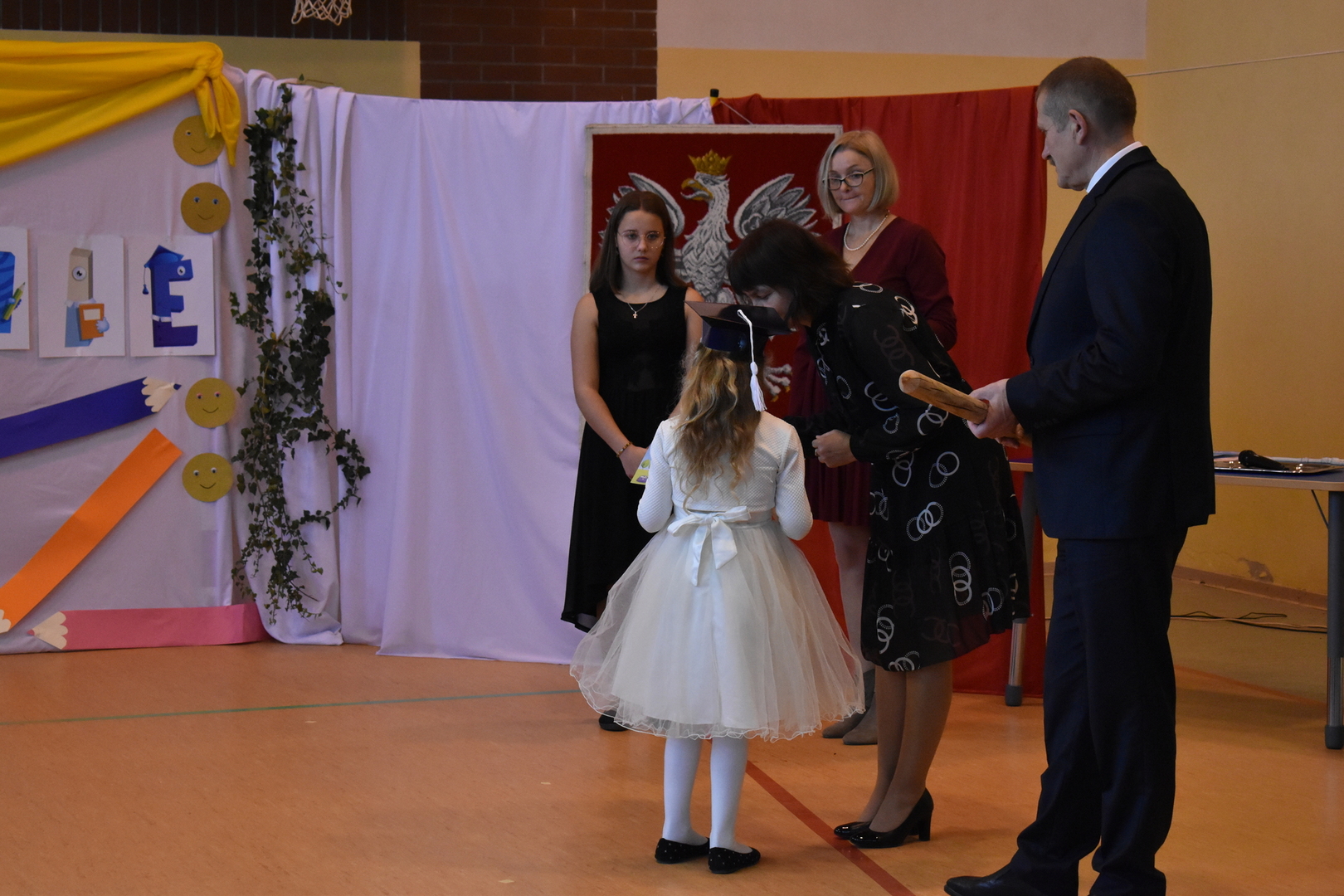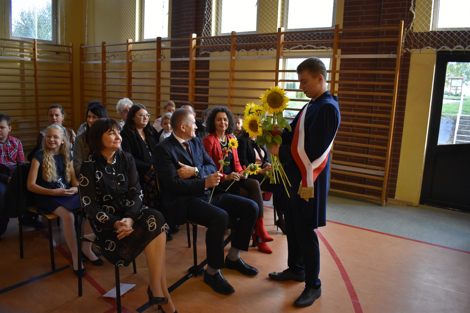 Dziś także pierwszoklasiści złożyli uroczyste ślubowanie i zostali oficjalnie włączeni do grona uczniów naszej szkoły. Pasowania, jak co roku, dokonywał Burmistrz Miasta i Gminy Wiązów – Jerzy Krochmalny.