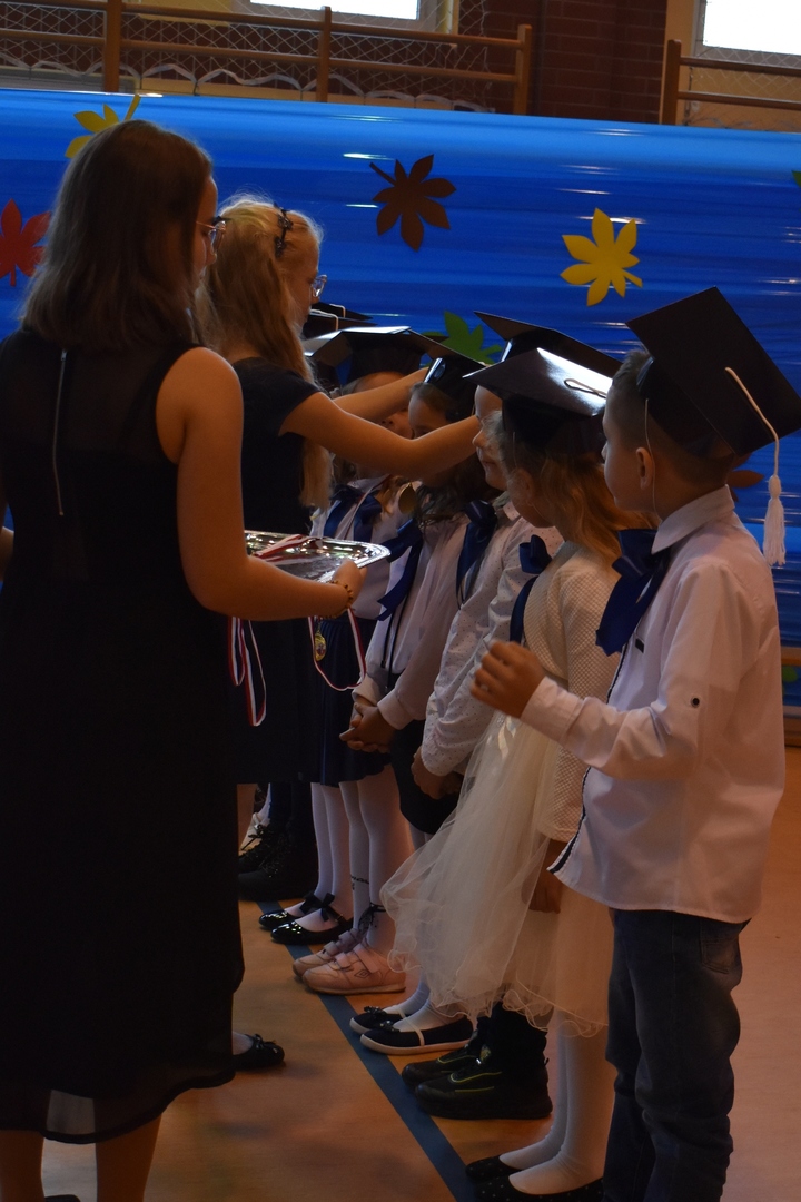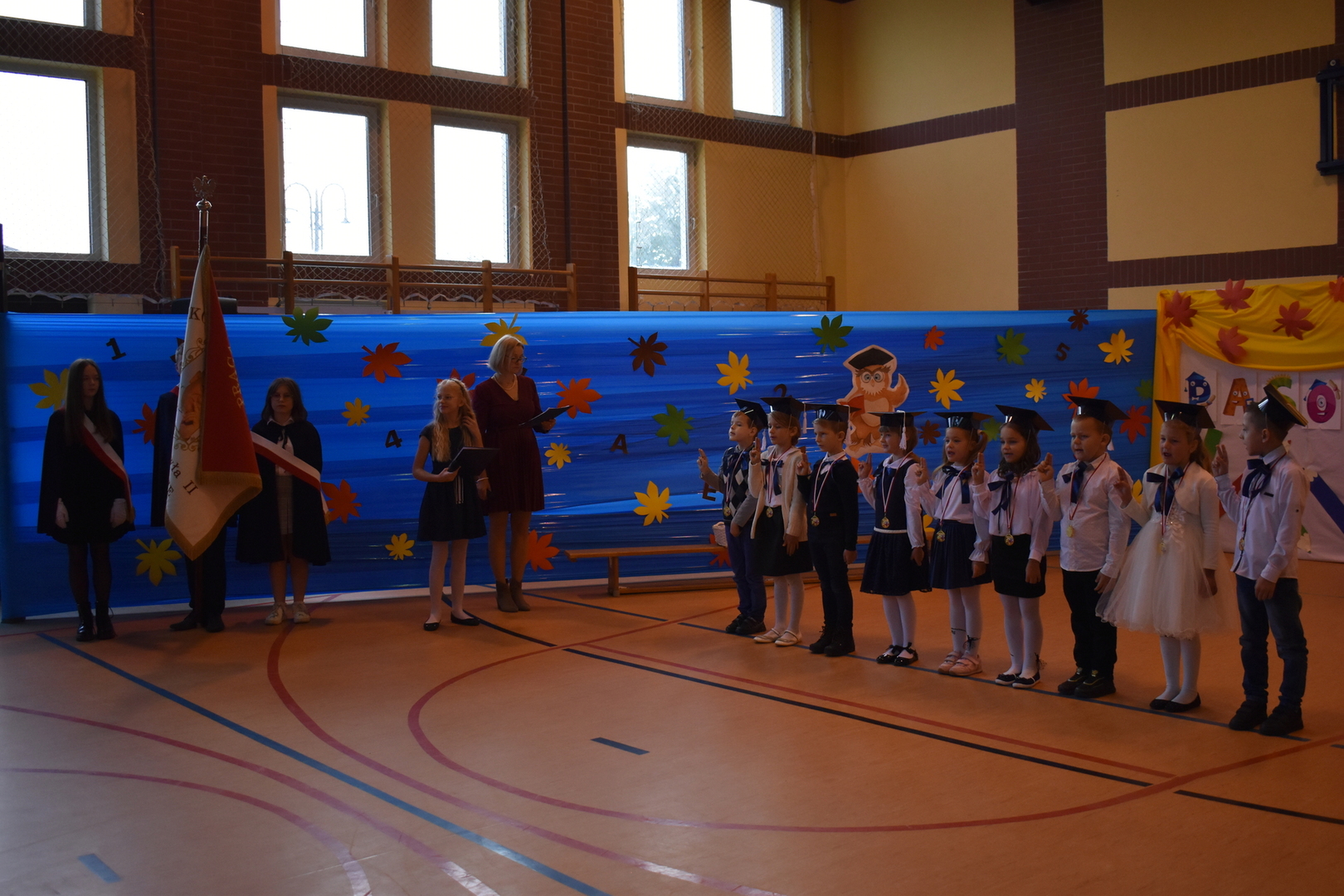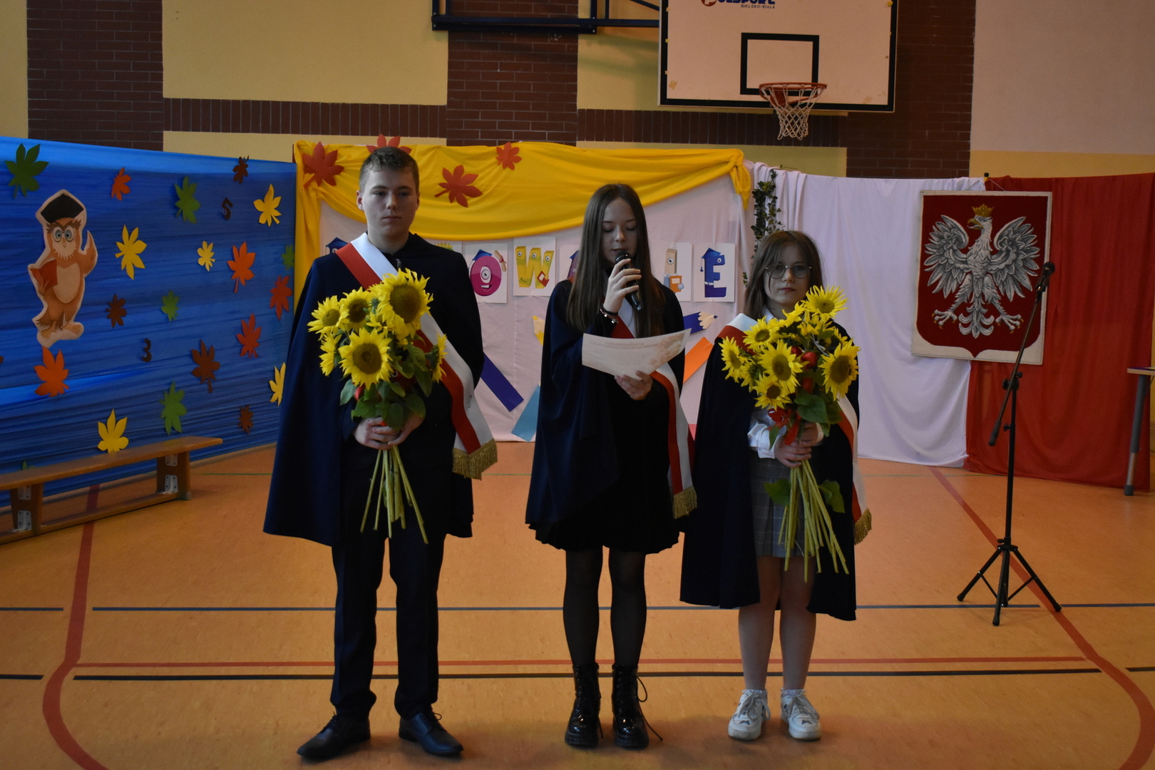 Dziś także pierwszoklasiści złożyli uroczyste ślubowanie i zostali oficjalnie włączeni do grona uczniów naszej szkoły. Pasowania, jak co roku, dokonywał Burmistrz Miasta i Gminy Wiązów – Jerzy Krochmalny.