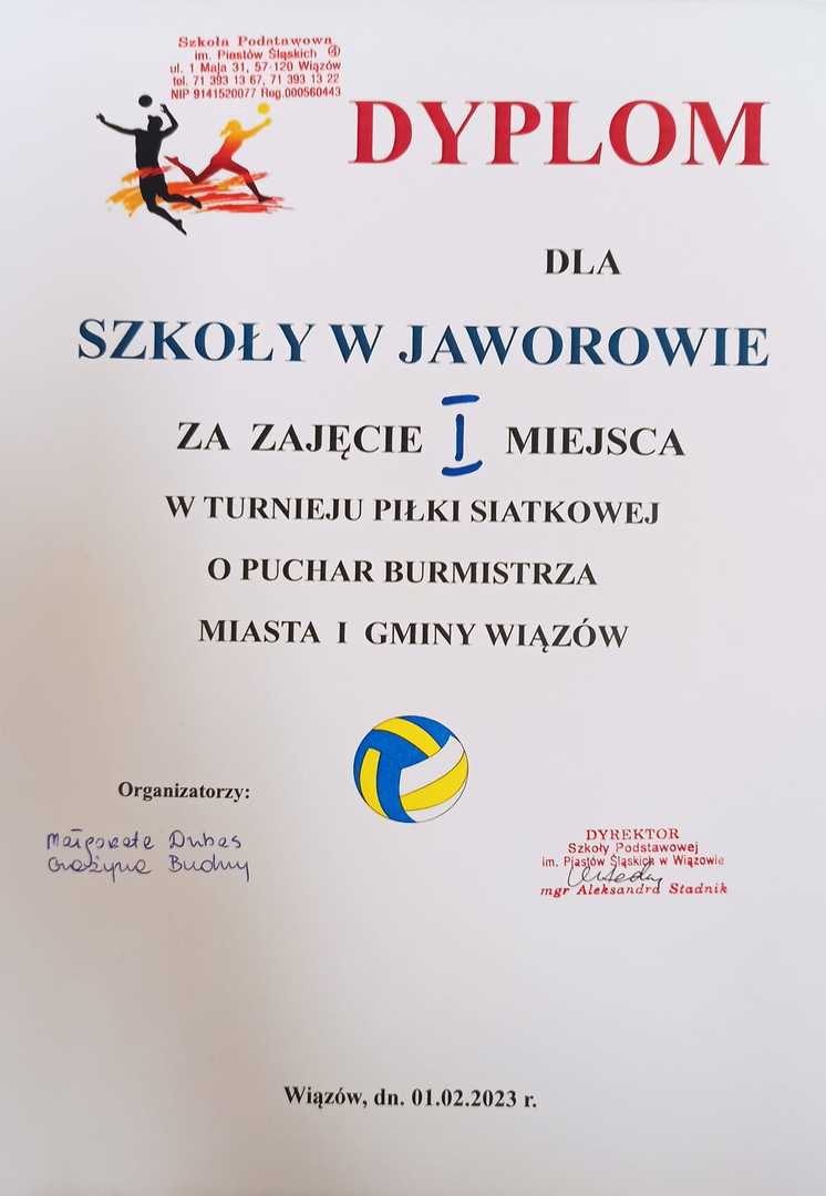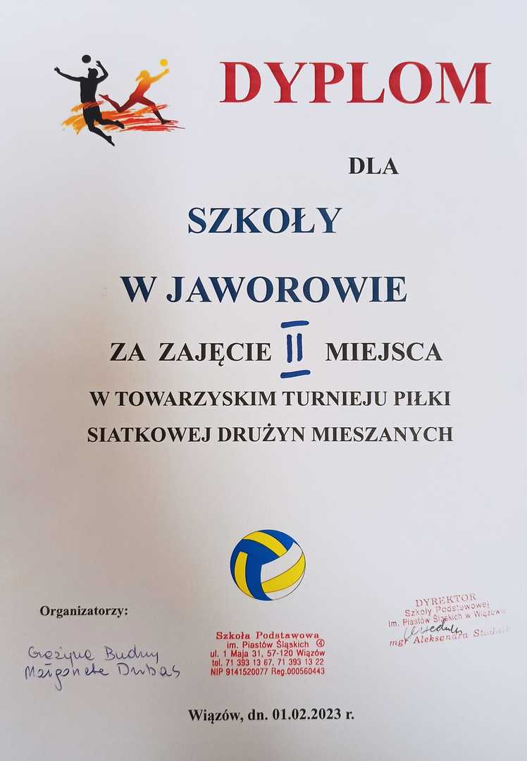 01.02.2023r. odbył się Turniej Piłki Siatkowej w kategorii chłopców i dziewcząt szkoły podstawowej, zorganizowany przez Szkołę Podstawową im. Piastów Śląskich w Wiązowie.