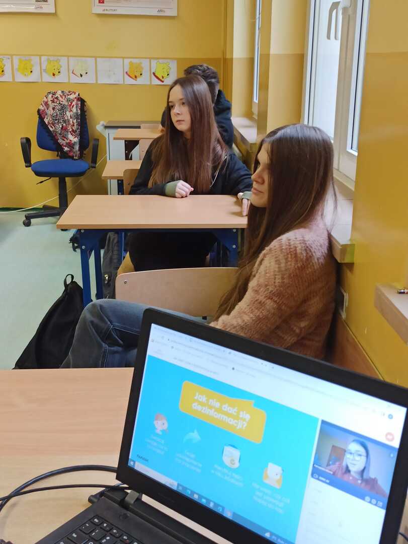 W ramach akcji uczniowie klas VII i VIII uczestniczyli w lekcji online pt. „Jak radzić sobie z dezinformacją w sieci”, która dotyczyła m.in. dezinformacji w mediach społecznościowych, sposobów rozpoznawania fakenewsów, sposobów weryfikowania informacji napotkanych w sieci oraz higieny cyfrowej. Lekcję prowadziła ekspertka NASK – Aleksandra Wrona.