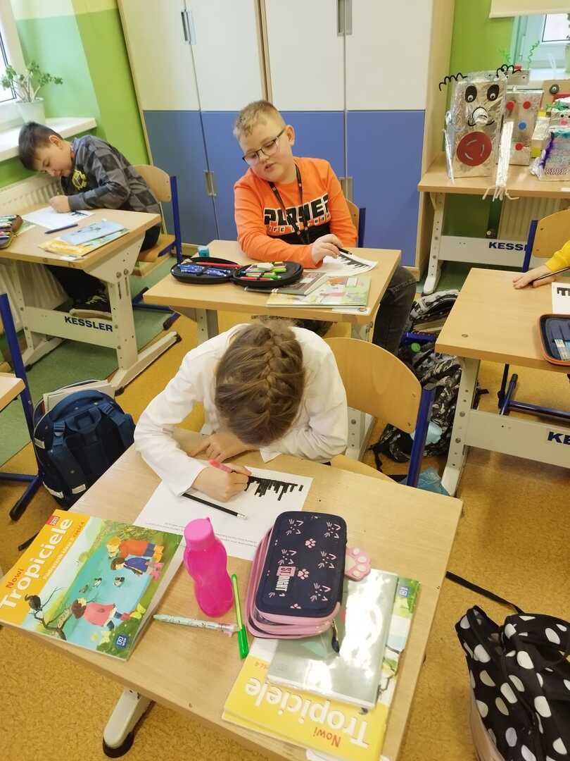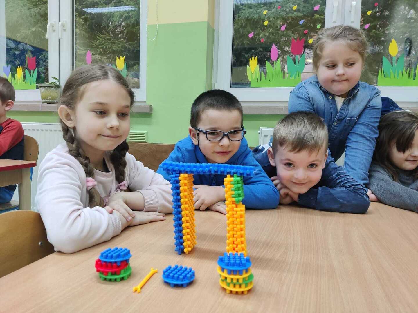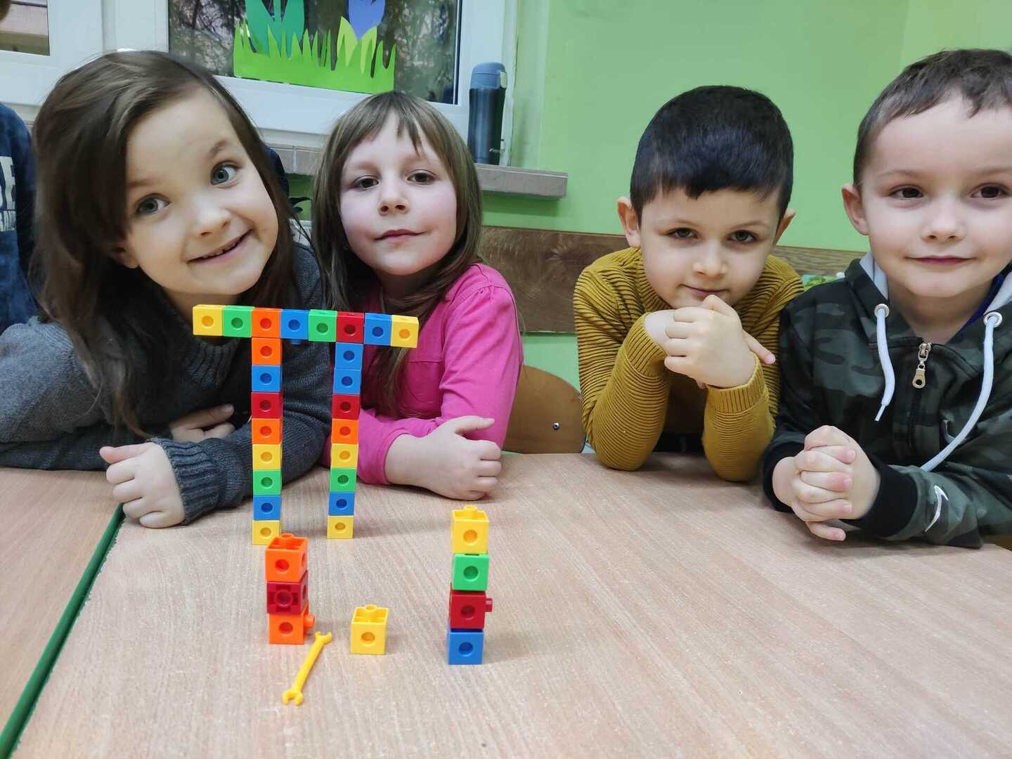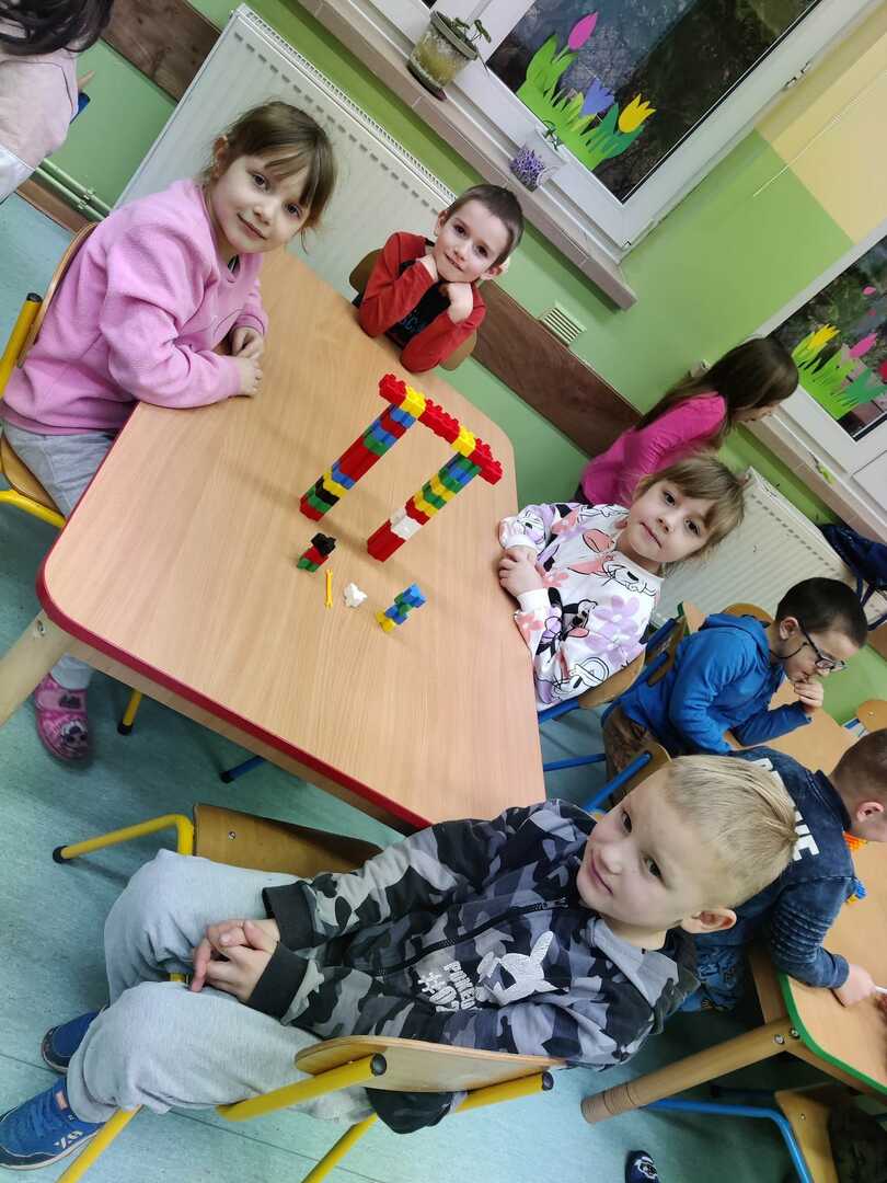 Do akcji włączyli się też młodsi uczniowie. Było kodowanie, układanie puzzli z liczby π, malowanie "miasta π". A dzieci z Oddziału Przedszkolnego w grupach budowały piękne modele litery π z klocków.