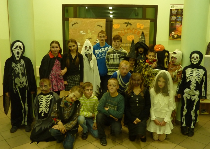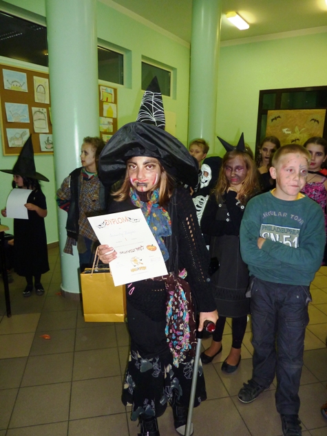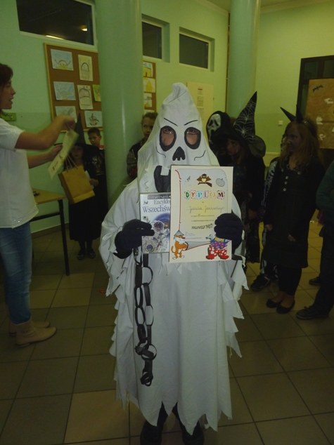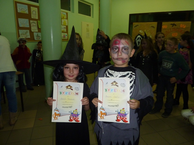 30 października uczniowie naszej szkoły bawili się na "Halloween Party", którego organizatorem był Szkolny Samorząd Uczniowski. Uczestnicy zabawy przywdziali "straaaszne" stroje i bawili się przy dźwiękach ulubionej muzyki. W czasie zabawy wybrano także zwycięzców konkursu na najstraszniejszy strój. I miejsce zajęła uczennica klasy IV - Samanta Bojdo, II miejsce - uczeń klasy VI Kuba Jankowski, a trzecie miejsce - Natalia Olszówka z klasy IV i Kacper Lizak z klasy III. Gratulujemy!!!