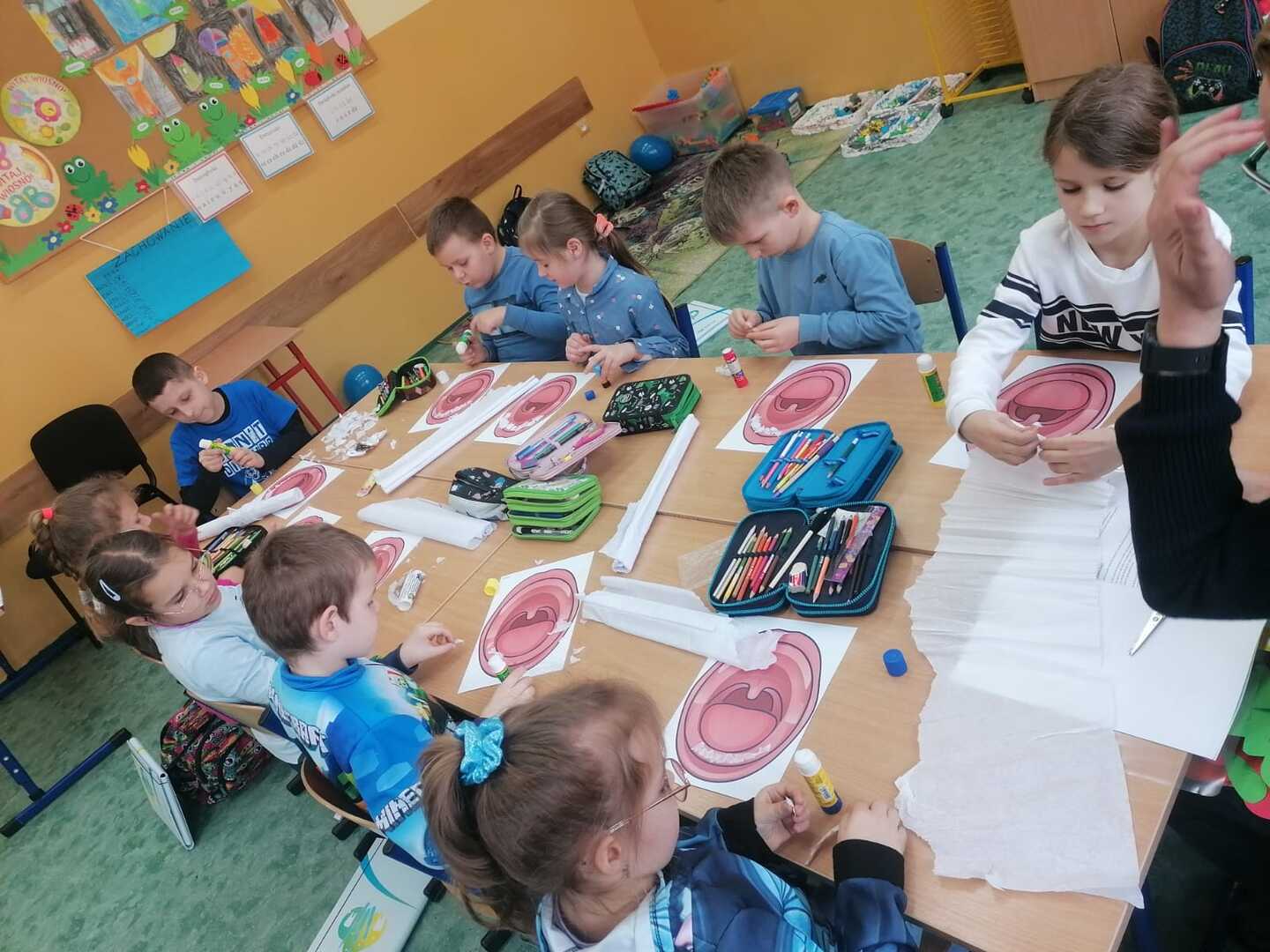 Program Edukacji Zdrowotnej "Smile together" dla klasy 1 szkoły podstawowej w zakresie profilaktyki próchnicy zębów - spotkanie pierwsze: "Co mamy w buzi?".