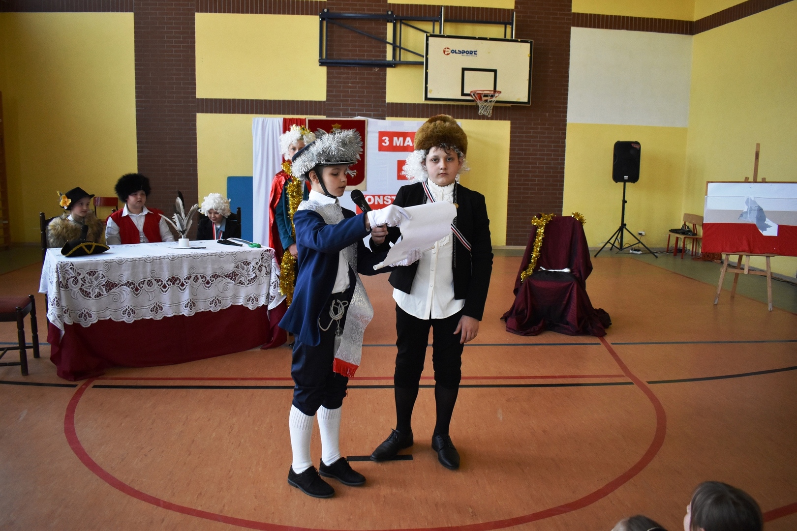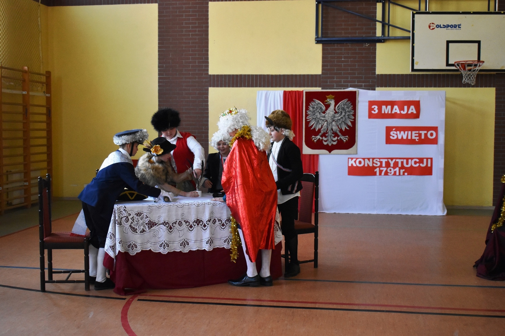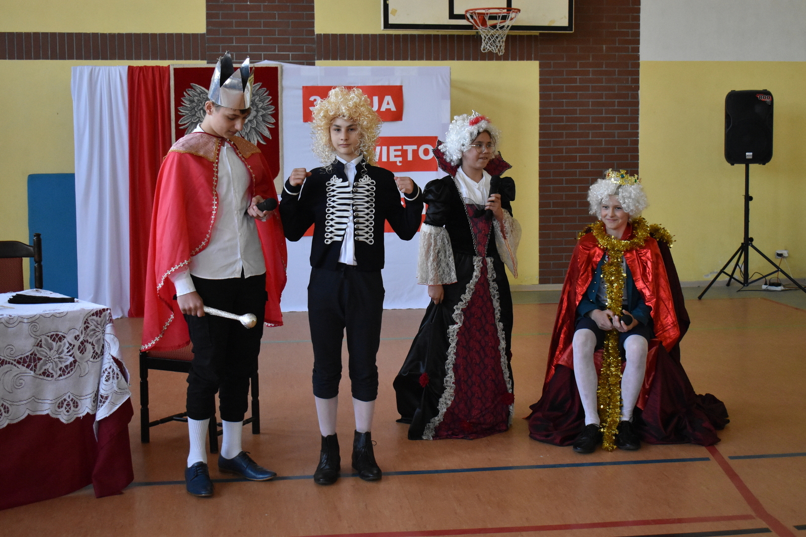 Uczniowie naszej szkoły uczcili Święto Trzeciego Maja. Jest to dzień, w którym w 1971 roku przyjęto pierwszą w Europie i drugą na świecie konstytucję, której celem było ratowanie kraju po I rozbiorze. W rocznicę jej uchwalenia uczniowie uczestniczący w apelu, przypomnieli społeczności szkolnej to niezmiernie ważne wydarzenie w historii naszego kraju. Dzięki nim przenieśliśmy się na obrady Sejmu Wielkiego, które przybliżyły ówczesną sytuację polityczno-społeczną naszego kraju. Nie zabrakło też odniesień do współczesności. Apel zakończył się wspólnym śpiewem.