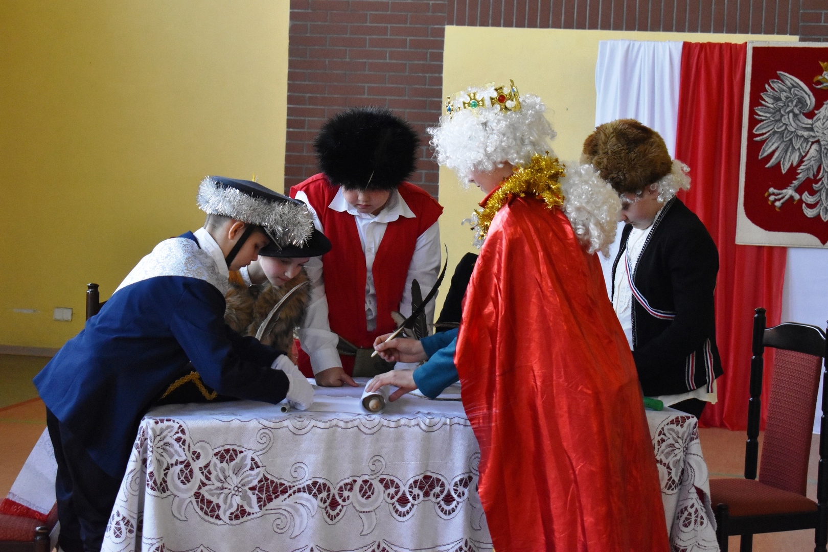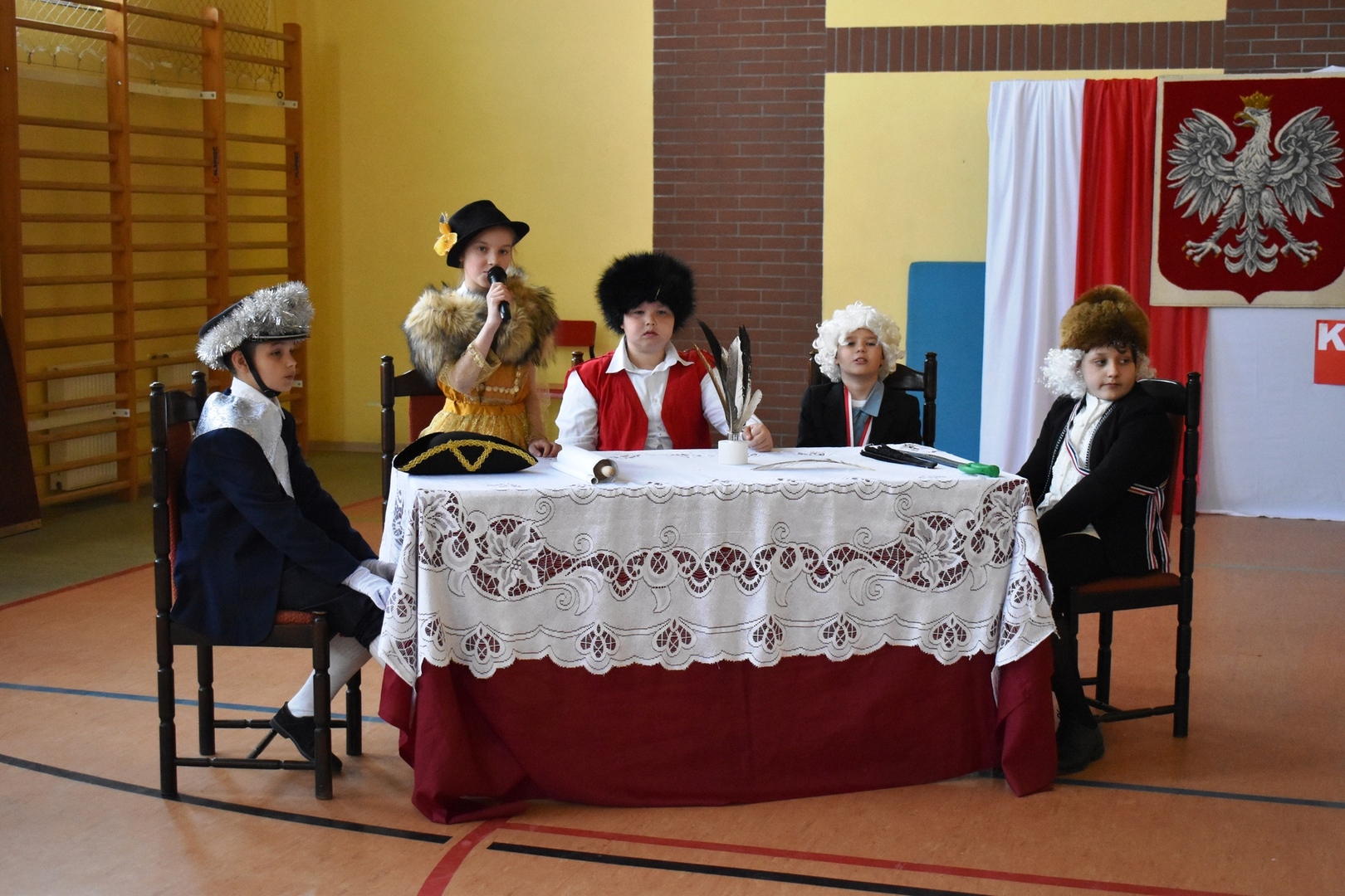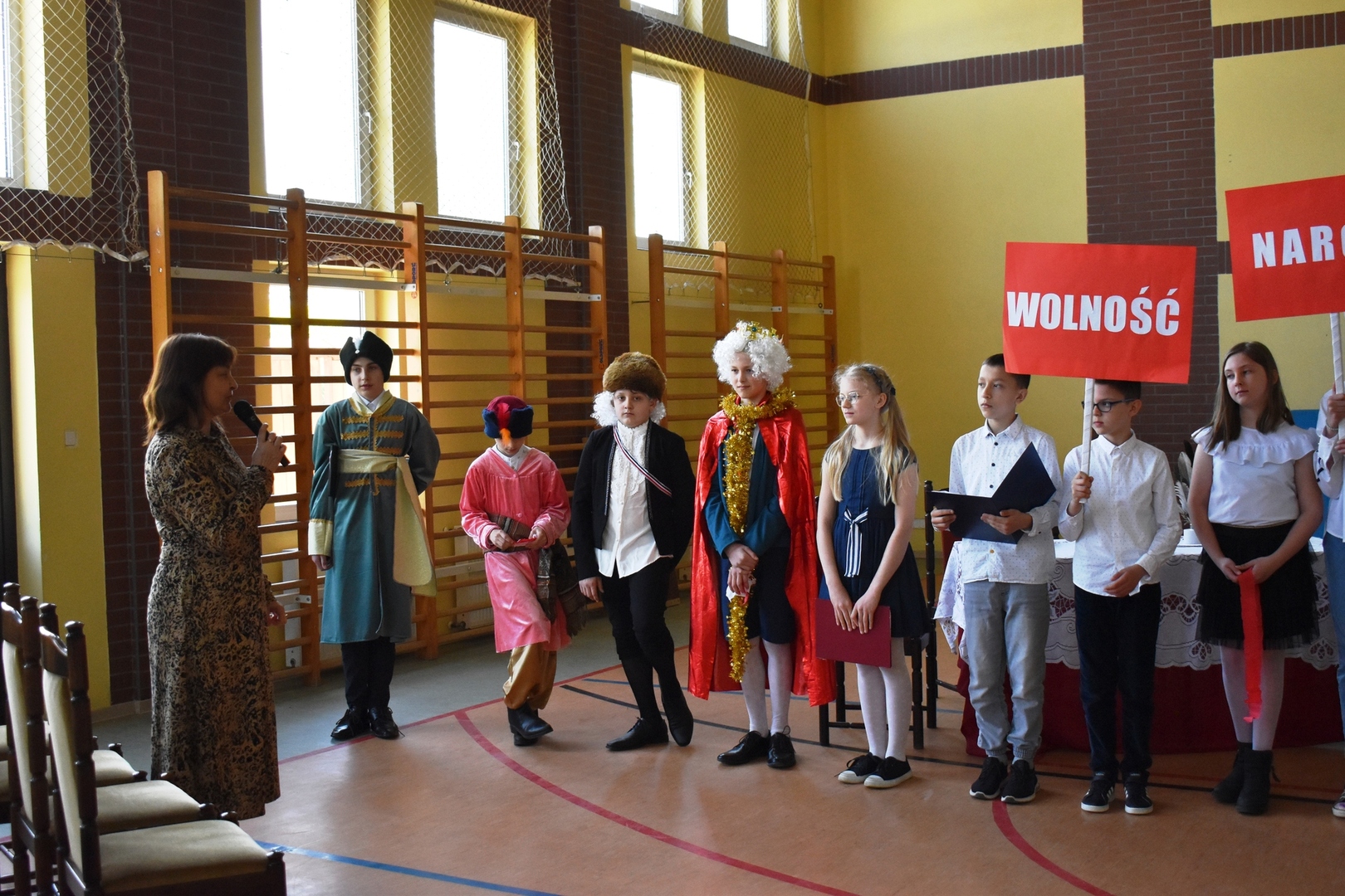 Uczniowie naszej szkoły uczcili Święto Trzeciego Maja. Jest to dzień, w którym w 1971 roku przyjęto pierwszą w Europie i drugą na świecie konstytucję, której celem było ratowanie kraju po I rozbiorze. W rocznicę jej uchwalenia uczniowie uczestniczący w apelu, przypomnieli społeczności szkolnej to niezmiernie ważne wydarzenie w historii naszego kraju. Dzięki nim przenieśliśmy się na obrady Sejmu Wielkiego, które przybliżyły ówczesną sytuację polityczno-społeczną naszego kraju. Nie zabrakło też odniesień do współczesności. Apel zakończył się wspólnym śpiewem.