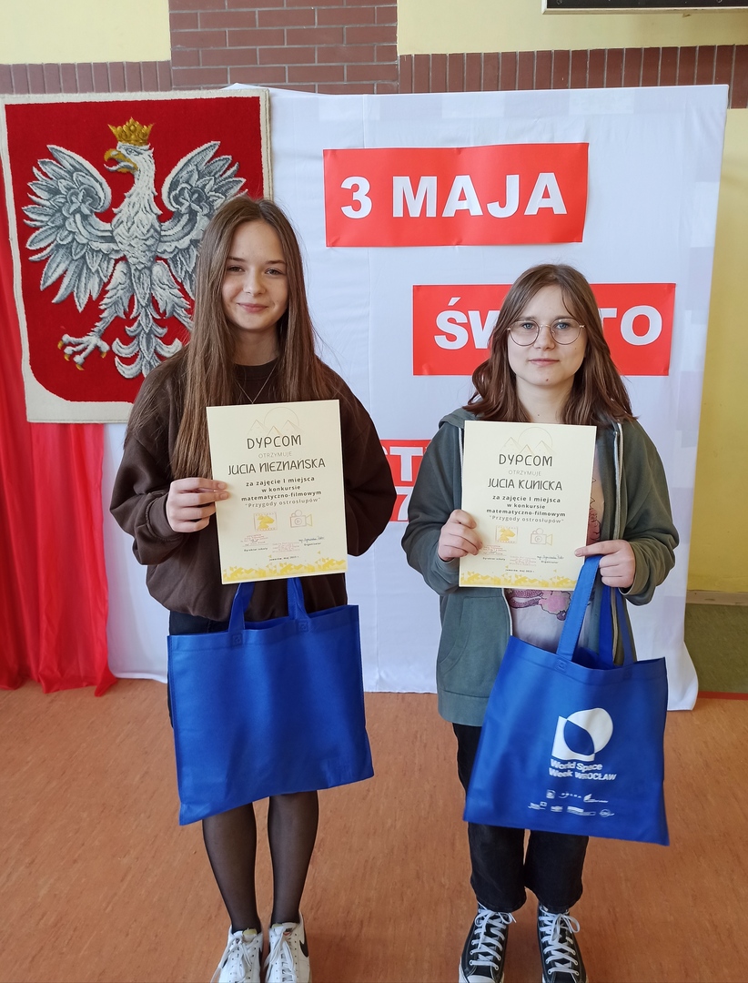 Po apelu wręczono nagrody dla uczennic, które zwyciężyły w konkursie matematyczno-filmowym "Przygody ostrosłupów".