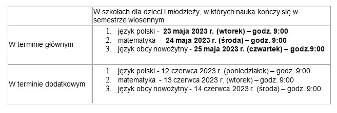 HARMONOGRAM EGZAMINU ÓSMOKLASISTY 2022/2023