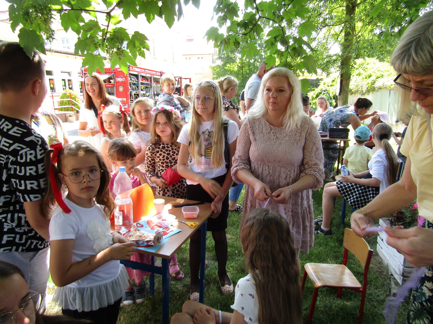 Rodziców, pieczone kiełbaski, tor przeszkód czy gra w tenisa stołowego lub bule. Można było z bliska zobaczyć wóz strażacki oraz skorzystać z zabawy w ,,wodnej fontannie", którą zorganizowali strażacy. Ponadto uczniowie mogli skorzystać z tatuaży, malowania twarzy farbkami, doczepianych warkoczy czy własnoręcznie wykonać biżuterię z koralików.
