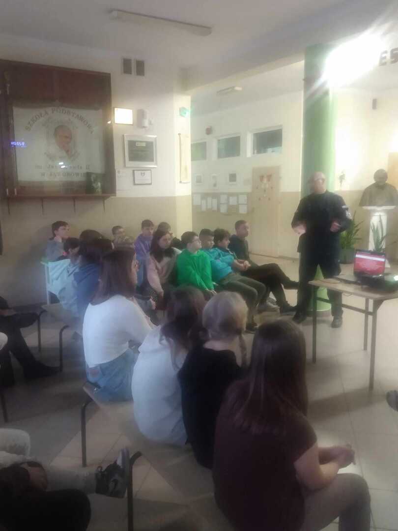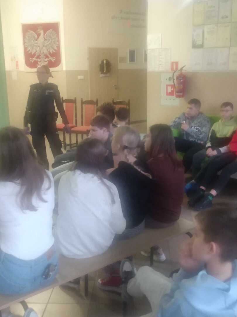 Uczniowie z klas V-VIII uczestniczyli w spotkaniu z przedstawicielami Komendy Powiatowej Policji w Strzelinie.
