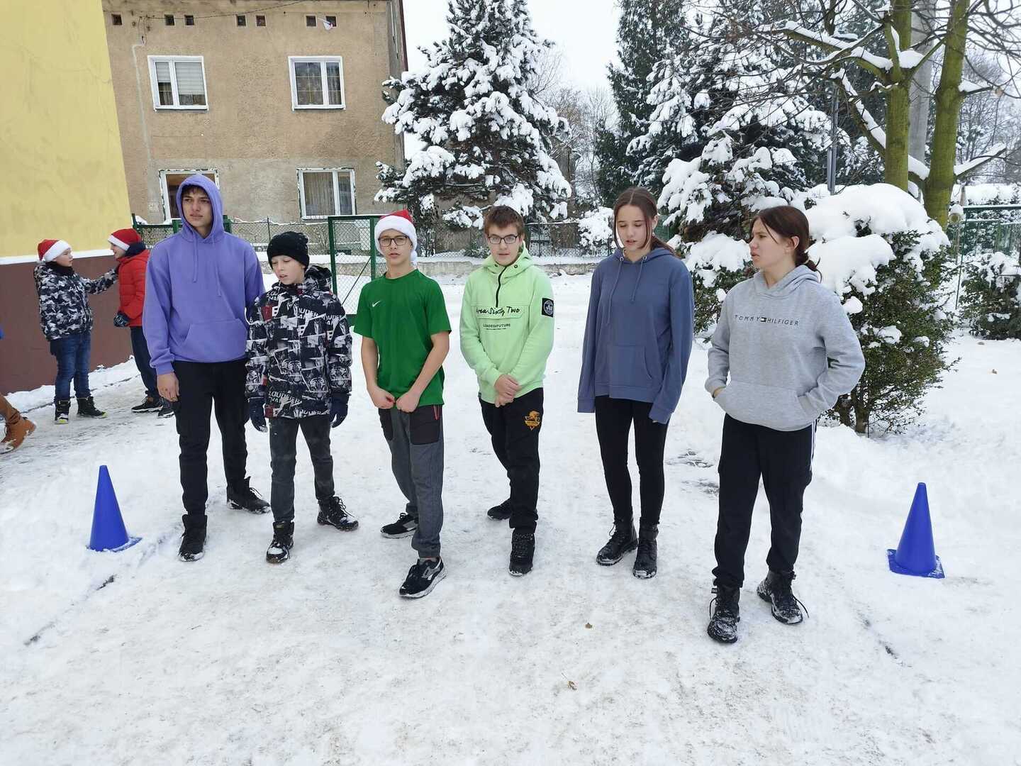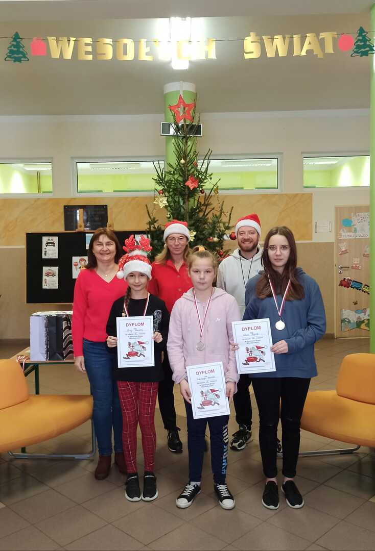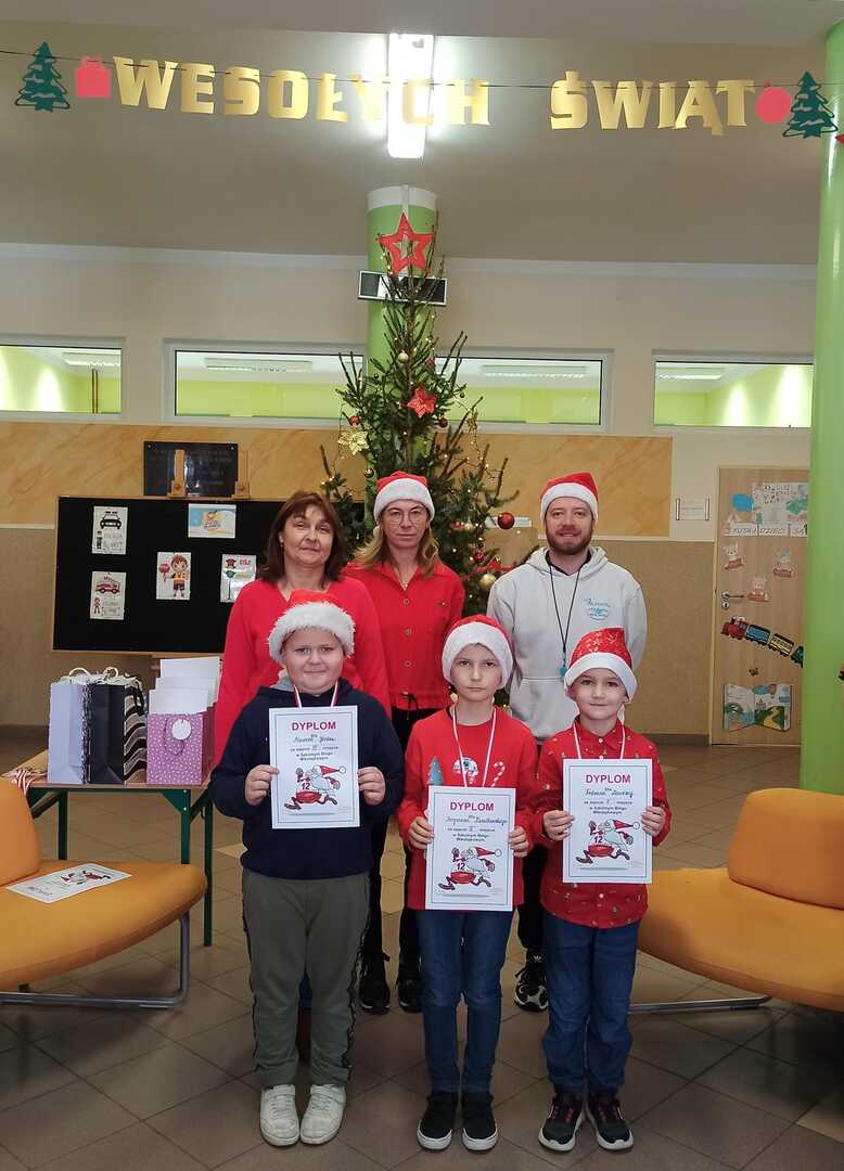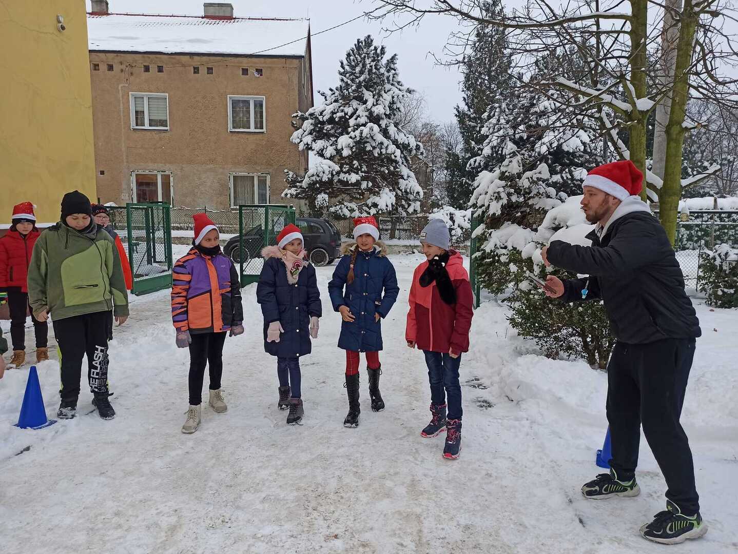 Jak co roku, w dniu 6.12.2023 uczniowie naszej szkoły wzięli udział w VII Szkolnym Biegu Mikołajkowym, którego głównym celem było stworzenie możliwości udziału w zawodach jak największej liczbie osób oraz promowanie aktywności fizycznej. W biegu wzięły udział dzieci z klas I-III oraz wystartowali uczniowie klas starszych IV-VIII. Uczniowie symbolicznie ubrani byli w czerwone czapeczki. Zwycięzcy otrzymali dyplomy i pamiątkowy medal. Bieg miał charakter rekreacyjny, ale nie zabrakło akcentów rywalizacji. W młodszej grupie wiekowej najlepsi okazali się F. Zawisza i E. Bronowicka. W starszej grupie uczniów pierwsi metę przekroczyli N. Pyczek i M. Król. Wszystkim gratulujemy i dziękujemy za udział i świetną zabawę. Zapraszamy ponownie za rok.
