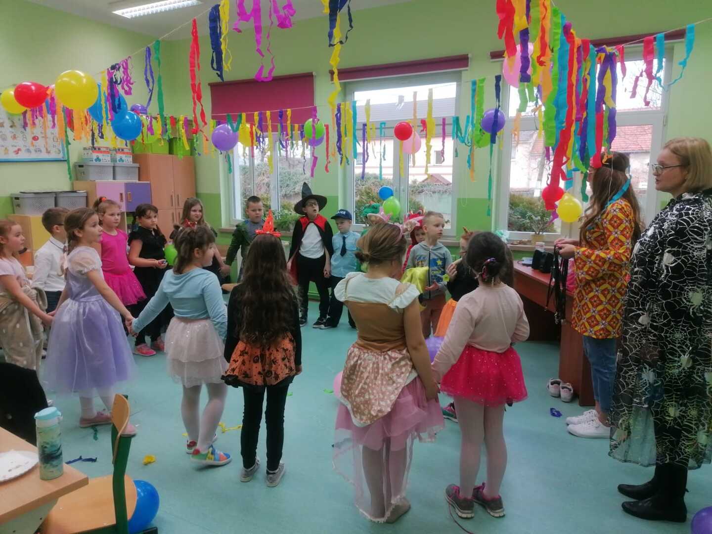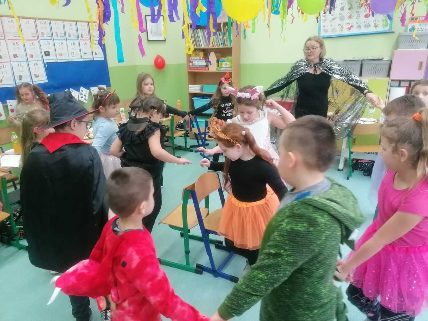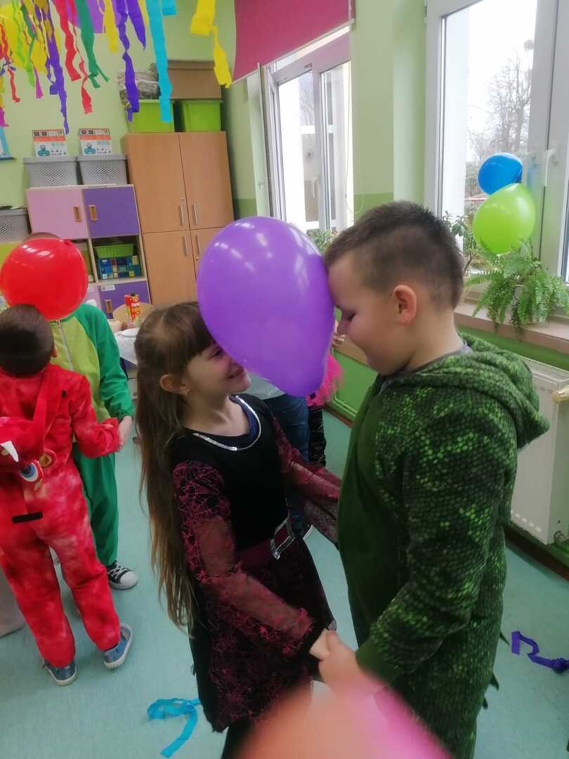 6 lutego w naszej szkole odbył się długo wyczekiwany przez dzieci bal karnawałowy. Uczniowie klasy 1 i 2 wraz z Paniami wspólnie uczestniczyli w tańcach i zabawach w pięknie udekorowanej bibułami i balonami sali. Wśród dzieci można było zauważyć przebrania za różne zwierzęta i postaci z ulubionych bajek. Niektórych ciężko było rozpoznać Radości i zabawie nie było końca. Za słodki poczęstunek serdecznie dziękujemy jak zawsze niezawodnym Rodzicom. Kolejny bal już za rok!