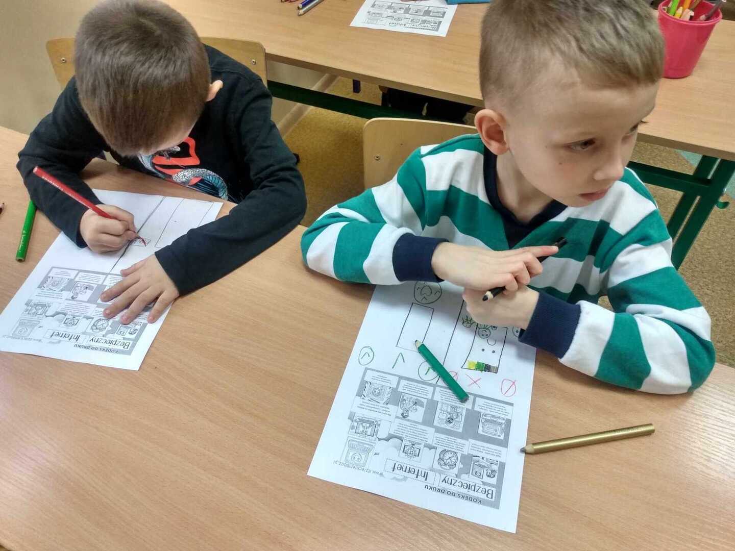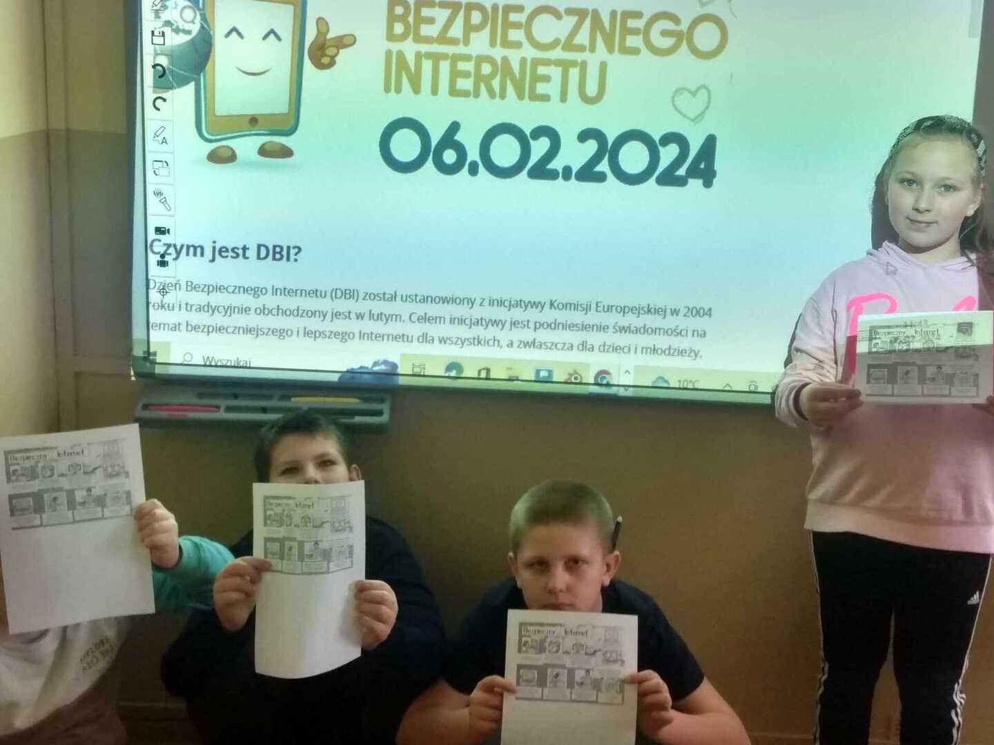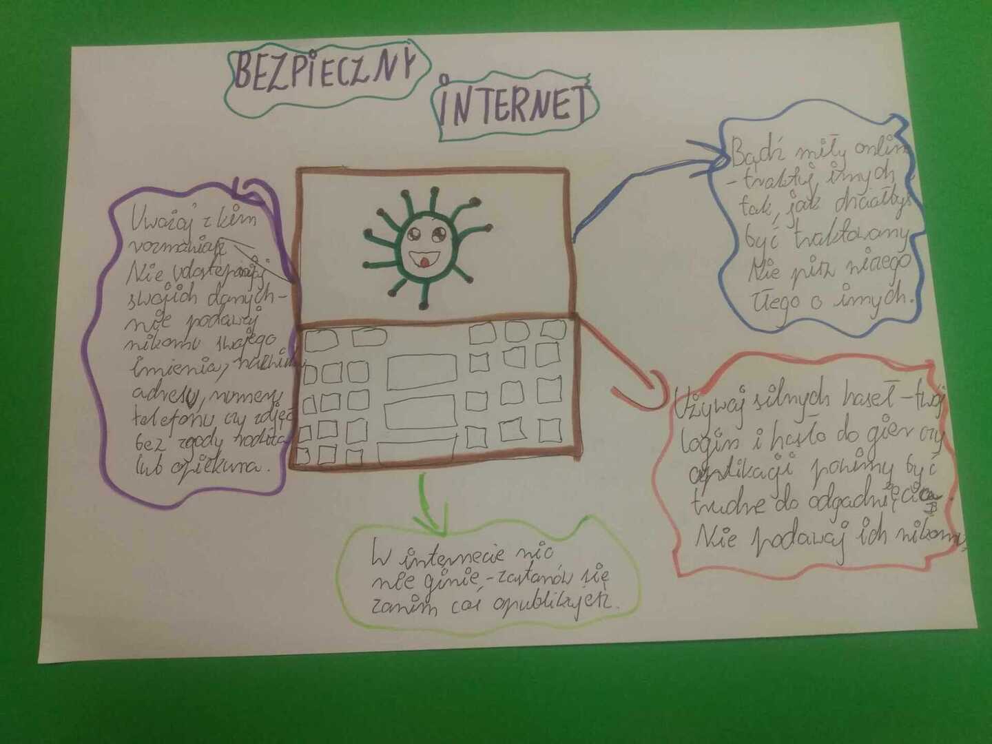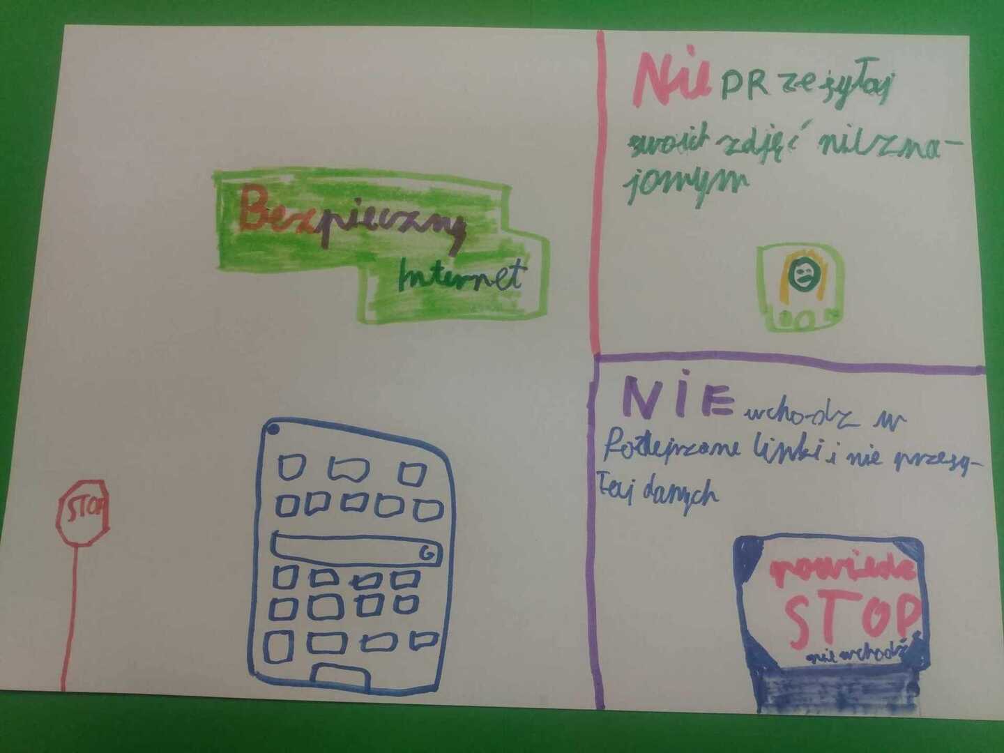 Na podsumowanie zajęć uczniowie wzięli udział w quizie i wykonali rysunki , które przedstawiały dobre i bezpieczne zasady korzystania z komputera i internetu.