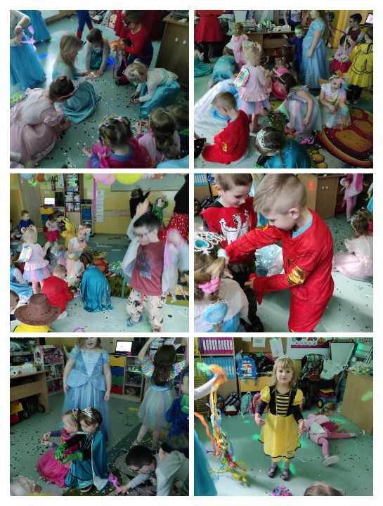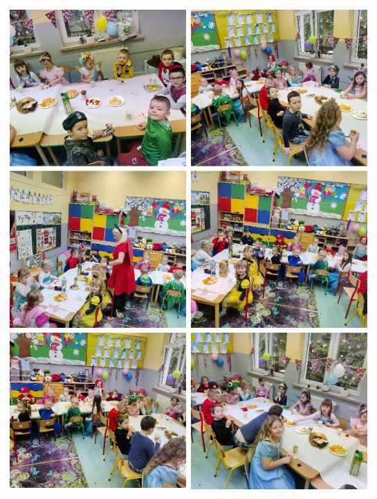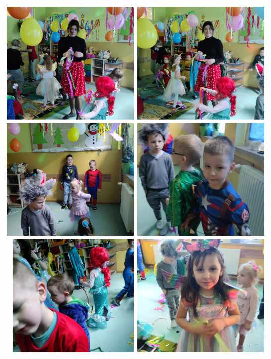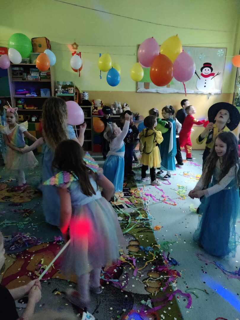 Ach! Co to był za bal! W karnawałowych przebraniach świetnie bawiły się wczoraj wszystkie przedszkolaki. Było głośno, wesoło i pysznie... Pan Burmistrz Jerzy Krochmalny częstował pączkami, dzieci zajadały też swoje ulubione łakocie