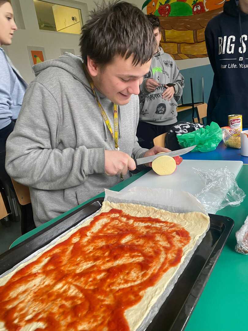 O relacjach przy pizzy! Pogłębienie relacji między uczniami, zdobycie pozytywnych doświadczeń we współpracy z kolegami i koleżankami z klasy oraz doskonalenie umiejętności kulinarnych było głównym celem dzisiejszej lekcji wychowawczej w klasie ósmej!