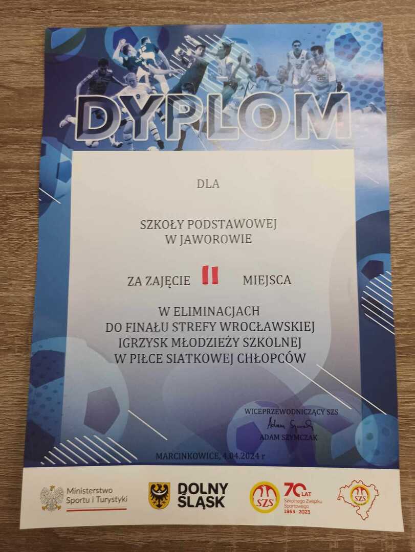 W dniu 4 kwietnia 2024 roku nasza reprezentacja uczestniczyła w zawodach piłki siatkowej na poziomie "pół wojewódzkim" gdzie nasza szkoła walczyła z innymi szkołami tj. z Pisarzowic i Marcinkowic o awans do głównej strefy wrocławskiej.