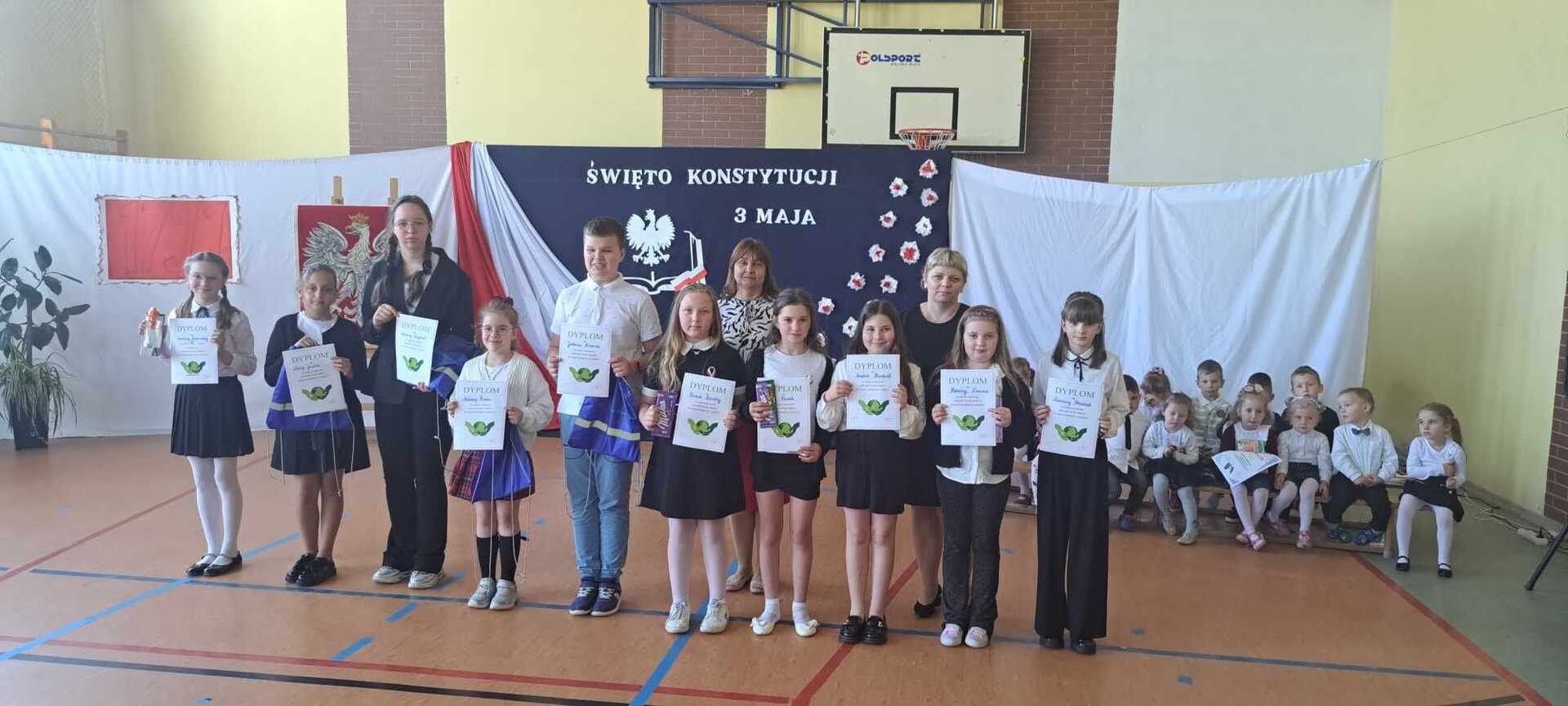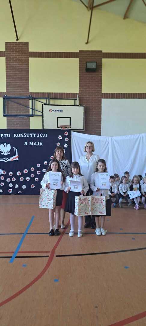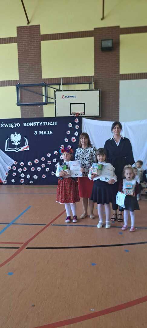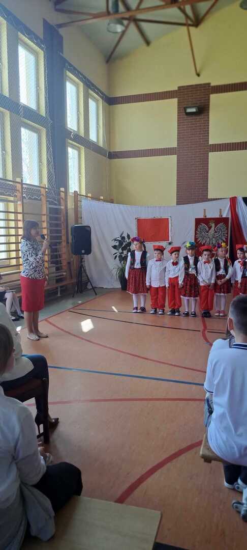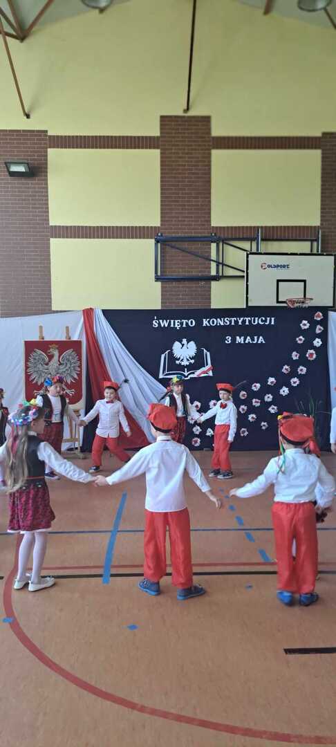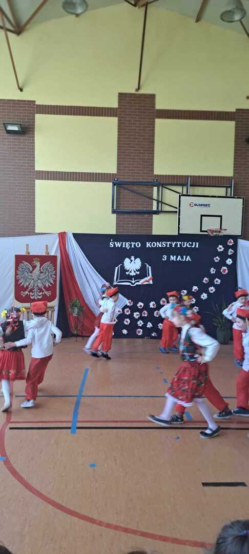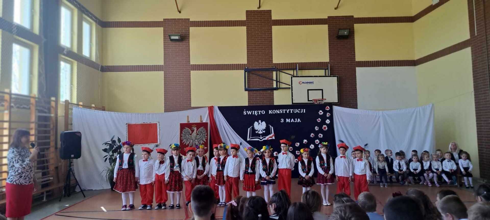 Dziś w naszej szkole odbyła się uroczystość z okazji Uchwalenia Konstytucji 3 Maja, którą przygotowały dzieci z Punktu Przedszkolnego i Oddziału Przedszkolnego. Był to apel patriotyczny, dzieci śpiewały i mówiły o naszej pięknej Polsce i o miłości do Ojczyzny. Maluchy z pasją recytowały "Katechizm polskiego dziecka" a "zerówka" żwawo i wspaniale zatańczyła "Krakowiaka".