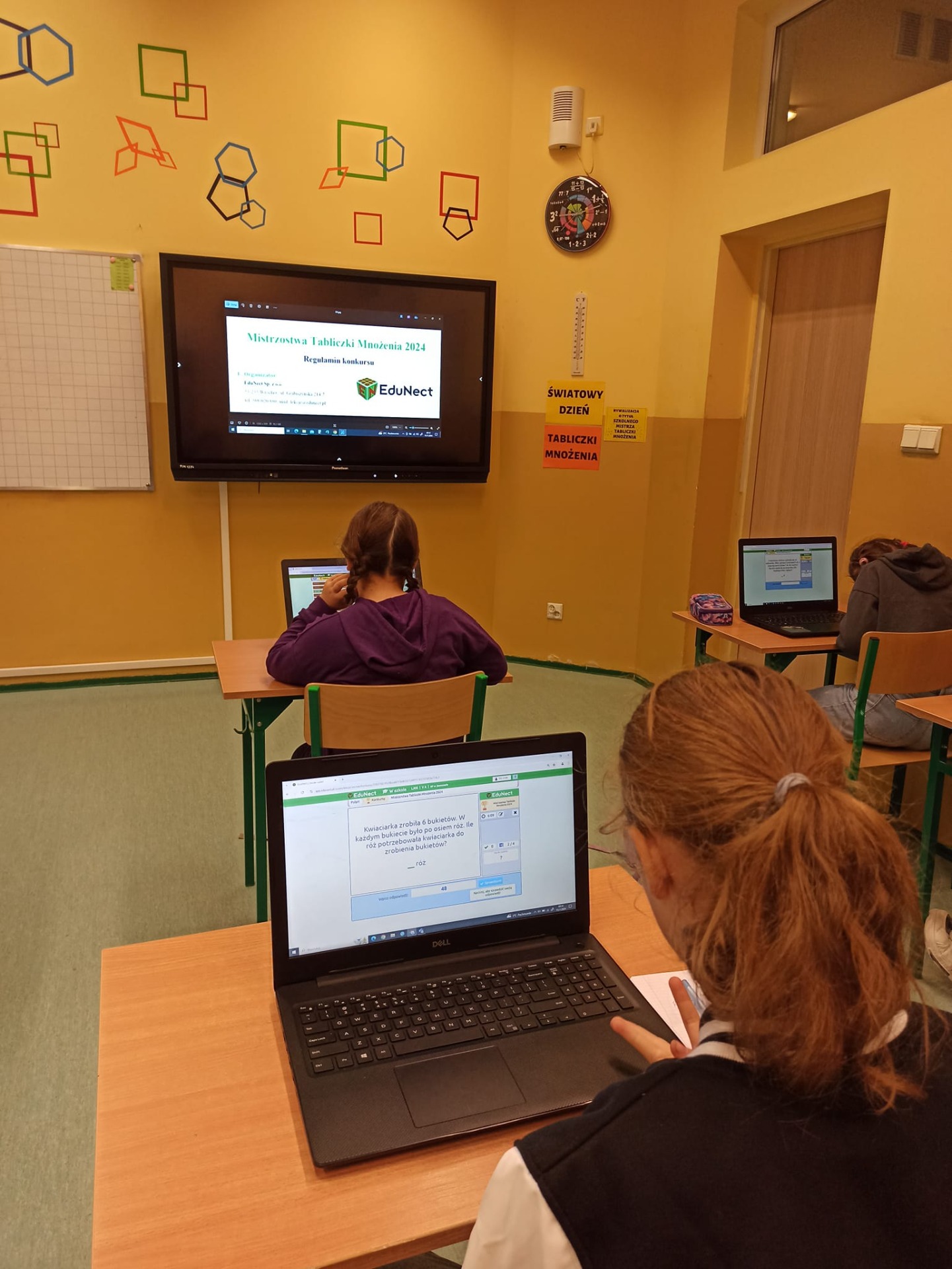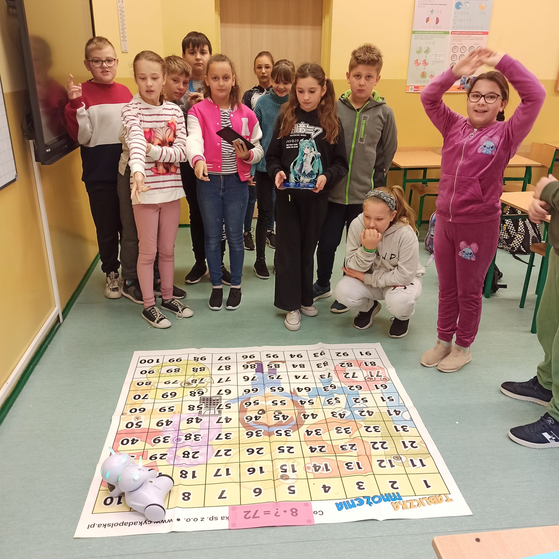 W ramach obchodów Światowego Dnia Tabliczki Mnożenia nasi uczniowie wzięli udział w licznych aktywnościach, które pozwoliły na doskonalenie obliczeń pamięciowych z zakresu mnożenia w sposób przyjazny dla dzieci. Były wyścigi robotów, quizy online, kodowanki, stacje zadaniowe oraz inne gry i zabawy, przy których było dużo śmiechu i emocji. Zwieńczeniem obchodów był konkurs Mistrzostwa Tabliczki Mnożenia przeprowadzany za pomocą lubianego przez uczniów systemu ćwiczeń internetowych EDUNECT.