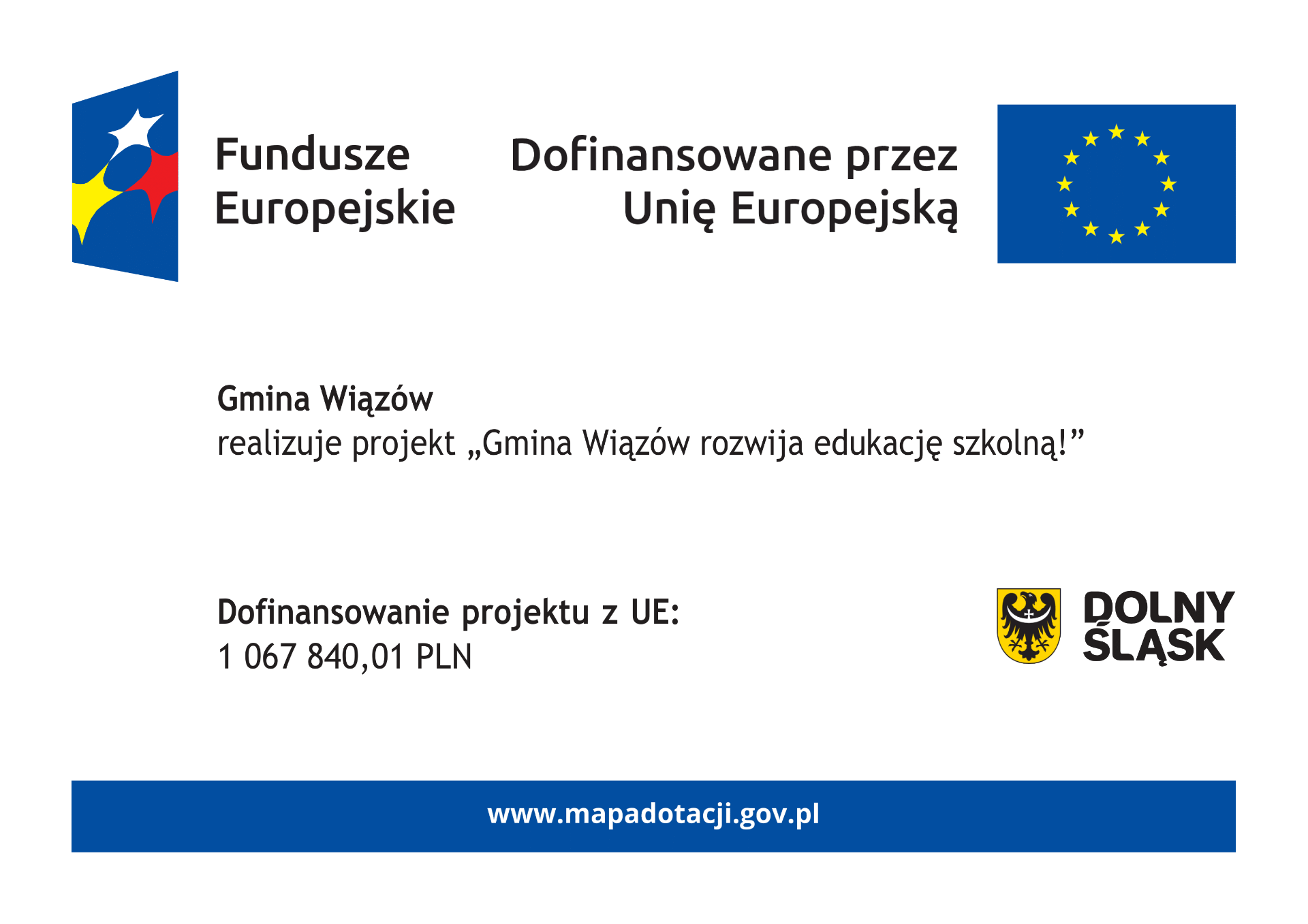 Gmina Wiązów pozyskała środki na realizację projektu „Gmina Wiązów rozwija edukację szkolną!”nr FEDS.08.01-IZ.00-0122/24. Dofinansowanie pozyskaliśmy z programu „Fundusze Europejskie dla edukacji na Dolnym Śląsku”, Działania nr FEDS.08.01 „Dostęp do edukacji” Programu Fundusze Europejskie dla Dolnego Śląska 2021-2027, współfinansowanego ze środków Europejskiego Funduszu Społecznego Plus.
