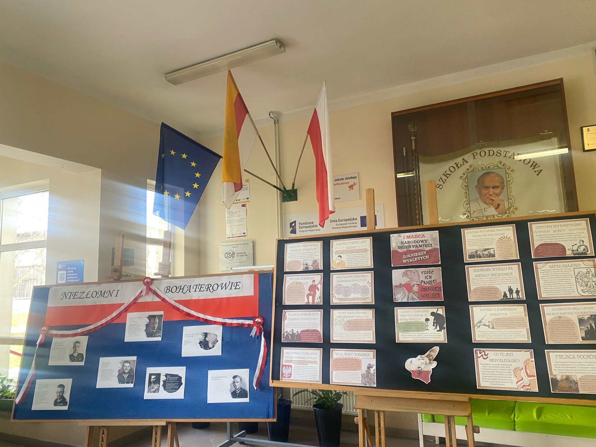 W ramach obchodów Narodowego Dnia Pamięci „Żołnierzy Wyklętych” w naszej szkole zorganizowana została okolicznościowa wystawa przybliżająca uczniom wizerunki i losy „Niezłomnych Bohaterów” oraz gazetka szkolna na holu głównym. Lekcje historii zostały przeprowadzone w oparciu o materiały edukacyjne Instytutu Pamięci Narodowej. Zorganizowany został pokaz filmu Żołnierze Niezłomni - Danuta Siedzikówna -„Inka” prod.IPN tv.