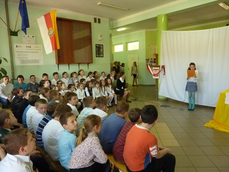 8 maja tego roku wszyscy uczniowie naszej szkoły wraz z nauczycielami spotkali się, aby przeżyć wspólnie chwilę refleksji nad wieloma majowymi dniami. Każde z tych świąt ma inną wymowę, inny charakter, czego innego dotyczy. Każde ma to do siebie, tym się wyróżnia, że bez względu na okoliczności niesie wartości własne, uniwersalne, często piękne, mądre, bardzo poważne, pełne zadumy i refleksji nad czasem minionym, nieobecnym.