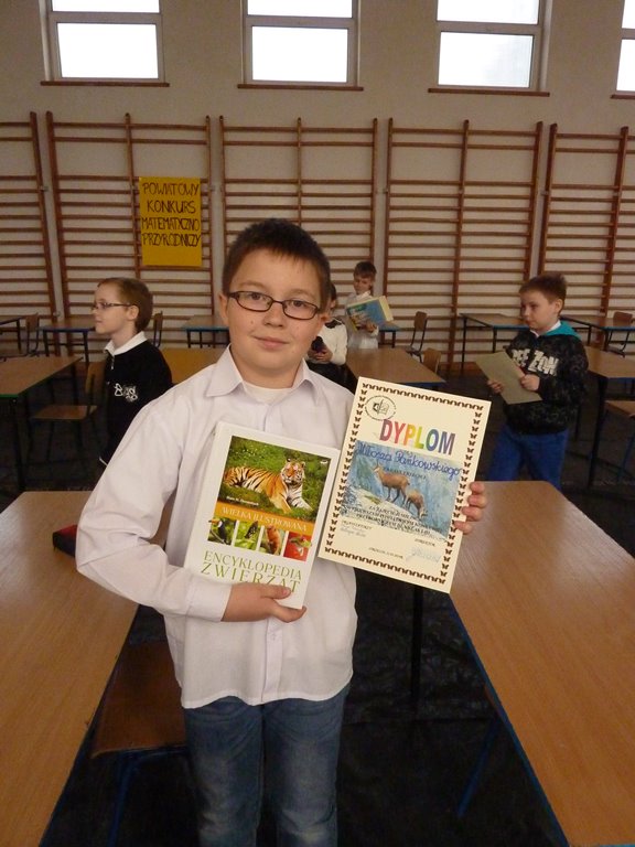 21 marca 2014 r. pięcioro uczniów z naszej szkoły wzięło udział w I Powiatowym Konkursie Matematyczno - Przyrodniczym w Strzelinie. Uczniowie klas I - III brali udział w części przyrodniczej, natomiast z klas IV - VI w części matematycznej. Miło nam poinformować, że reprezentanci klasy II i III zajęli miejsca na "podium". Kacper Kocik zajął III miejsce w kategorii klas II, natomiast Miłosz Pańkowski - II miejsce w kategorii klas III. Gratulujemy zwycięzcom a pozostałym życzymy powodzenia w przyszłym roku.